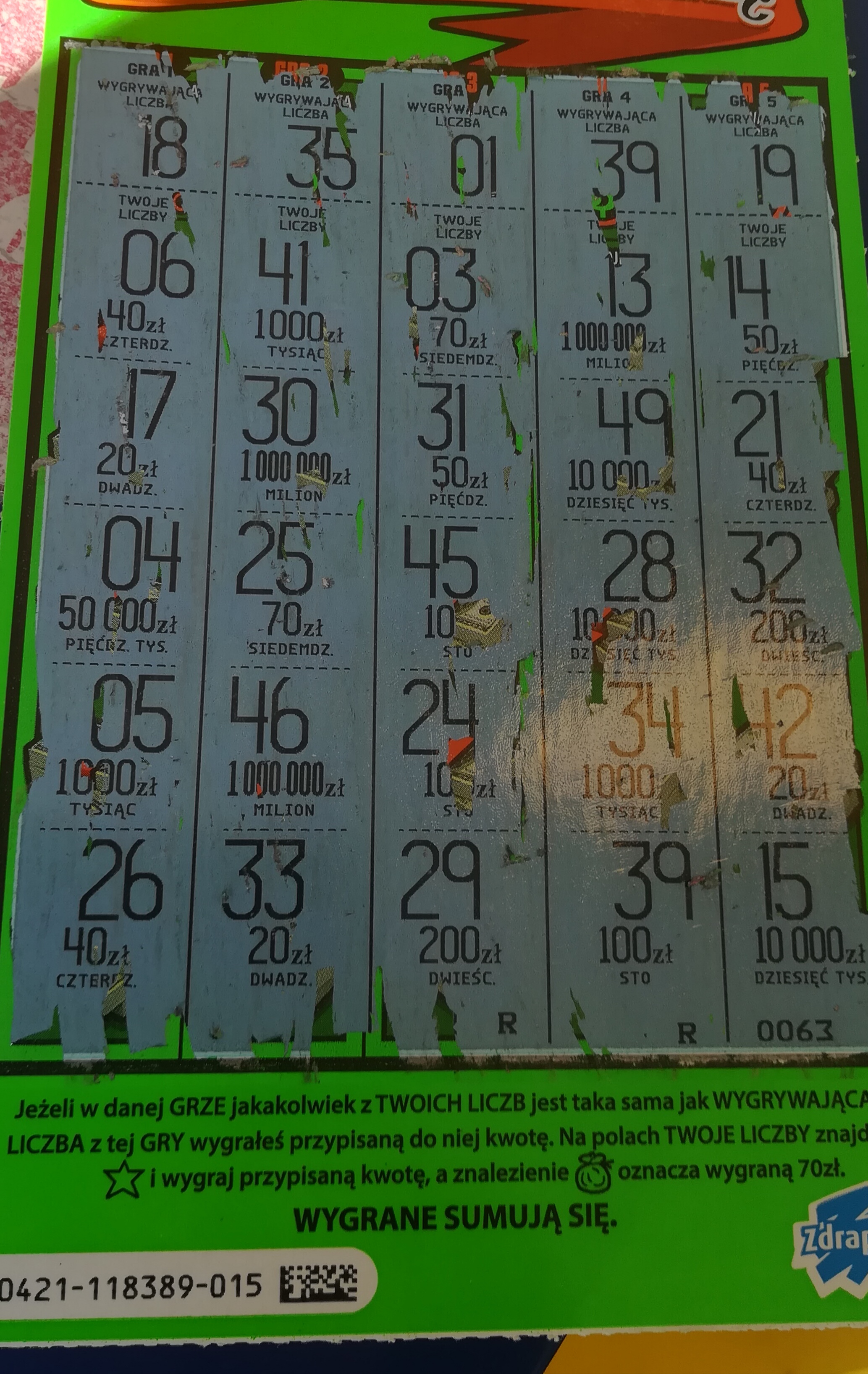 a nie wiesz czy jest gdzieś skan żeby potwierdzić lub zaprzeczyć mojej teorii?Nutaharion pisze: ↑21 sie 2019, 19:28Padło też 50 000 zł. Wspaniale rozebrana zdrapka. Tak trzymać 8-)![]()