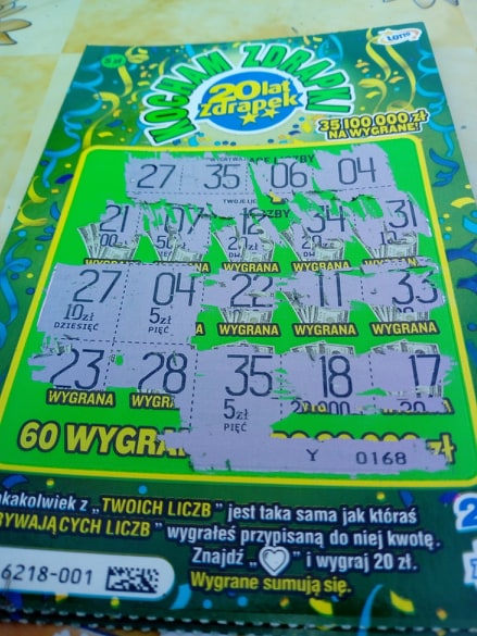 akurat numery w tej zdrapce notuję, więc podaję jak to wygląda