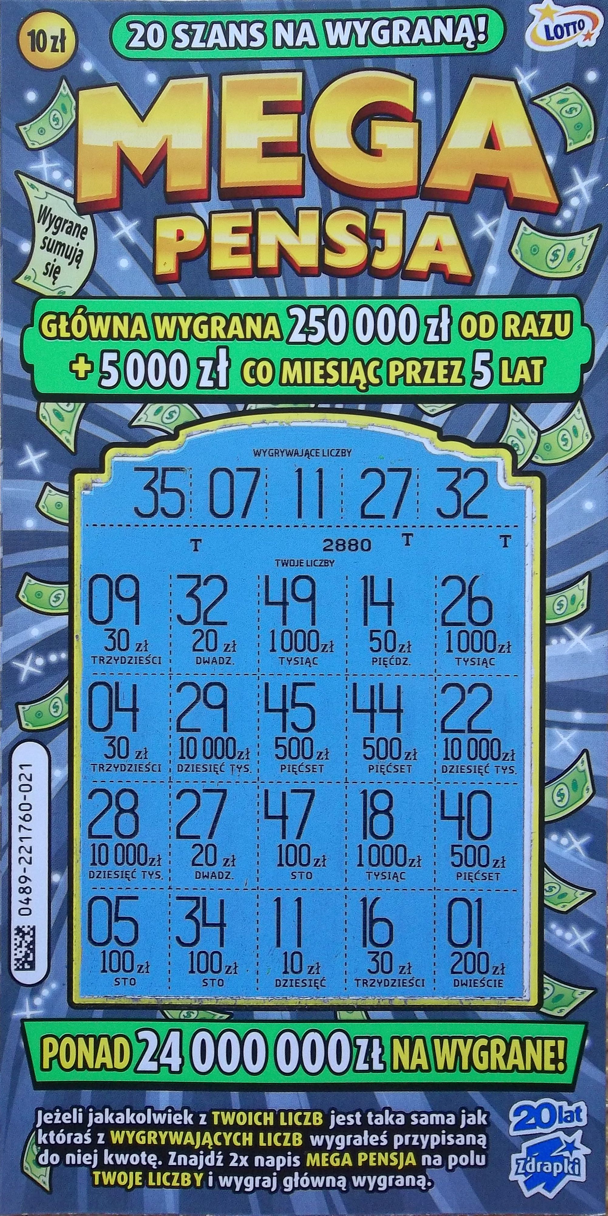 Od niepamiętnych czasów coś mam w tej zdrapce 😁 w 017 dwie dyszki a w 016 pięć dyszek