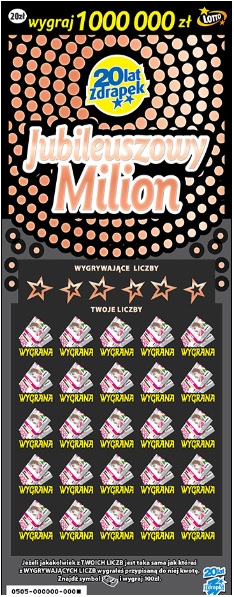 To prawda, ale chyba pierwszy raz widzę zdrapkę za 20 złotych w której oprócz głównej nagrody czyli miliona jest 500.000 złotych.