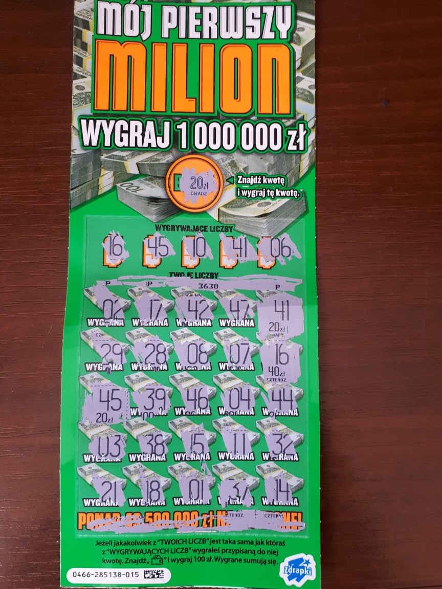 wzielam zielony moj pierwszy milon z przedzialem ciekawym nr 330044-005 i wpadlo 40 zl reszta nr1 i nr 7 puste