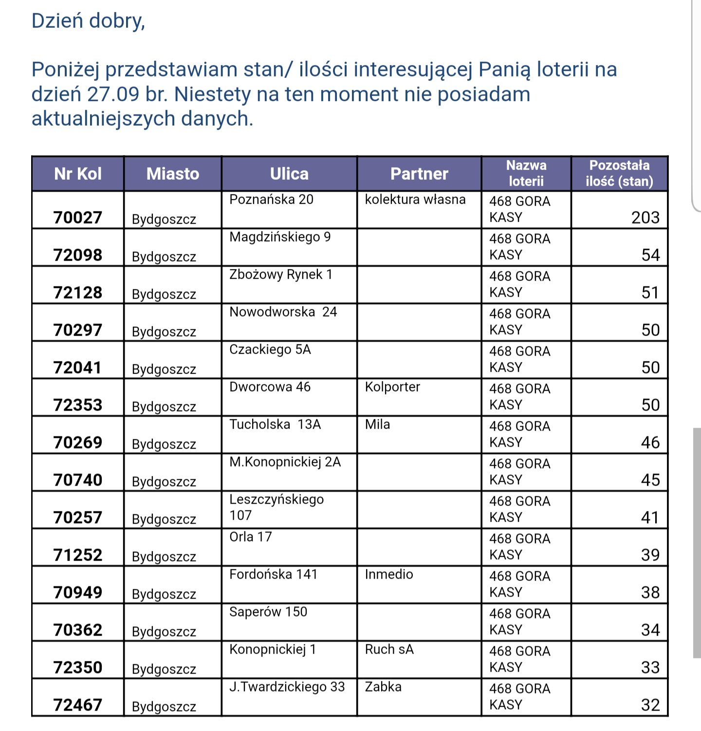 Wykaz Bydgoszcz. Co ciekawe od jakiegoś czasu kupuje w jednej kolekturze czarna GK (dziś też bylam), której na liście nie ma.