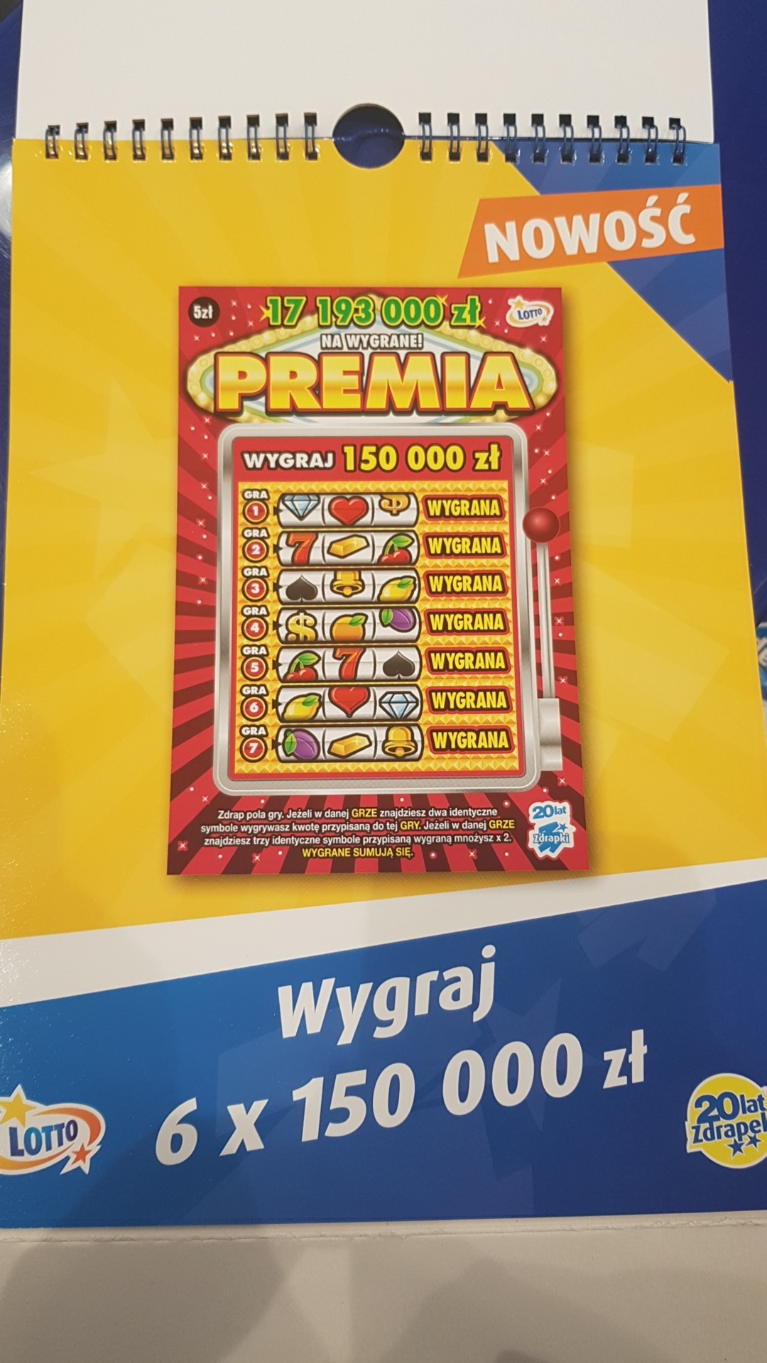 Ma być jeszcze Pełny Portfel za 30zł. Czekamy na zdjęcia i od razu chciałbym zapytać o możliwość udostępnienia tych zdjęć dalej. Dziękuję z góryLuna_83 pisze: ↑08 paź 2019, 16:42Dzisiaj pojawił się w mojej kolekturze kalendarz z nowościami. Postaram się jutro zrobić zdjęcia. Z ciekawszych rzeczy to to,że zdrapka,bodajże Podwójna gra będzie miała dodatkowo z tyłu zdrapki 4 okienka do otwarcia i jak się trafi 3 takie same symbole to się wygrywa. Z przodu natomiast będą liczby wygrywające tak jak np.w Ekstra pensji. Extra linie za 10 zł będą takie jak super linie,będzie tylko więcej rzędów. Białe złoto to taka biało-srebrna zdrapka,też znajdź liczby jak klasyka w zdrapkach za 5 zł,tylko na górze będzie jeszcze mnożnik x2,x3 i x5.Szalone zakupy za 5 zł-znajdź wygrywające liczby i dwa bonusy,coś jak Moje 77.Kieszonkowe za 1 zł-znajdź symbol banknotu i wygraj przypisaną kwotę.Piszę z pamięci,jakby co to jutro zweryfikuję te informacje![]()