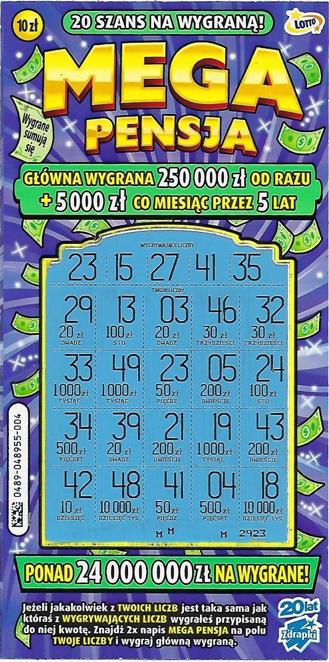 Piękna 100. U mnie po dłuuugiej przerwie dwie sztuki - 07 puste, 019 jest 20 zł. U mnie to wyczyn, MP dla mnie średnio łaskawa. No ale chyba wolę wziąć 2 MP niż jednego Janusza, u mnie zdrapki za 20 to dramacik.