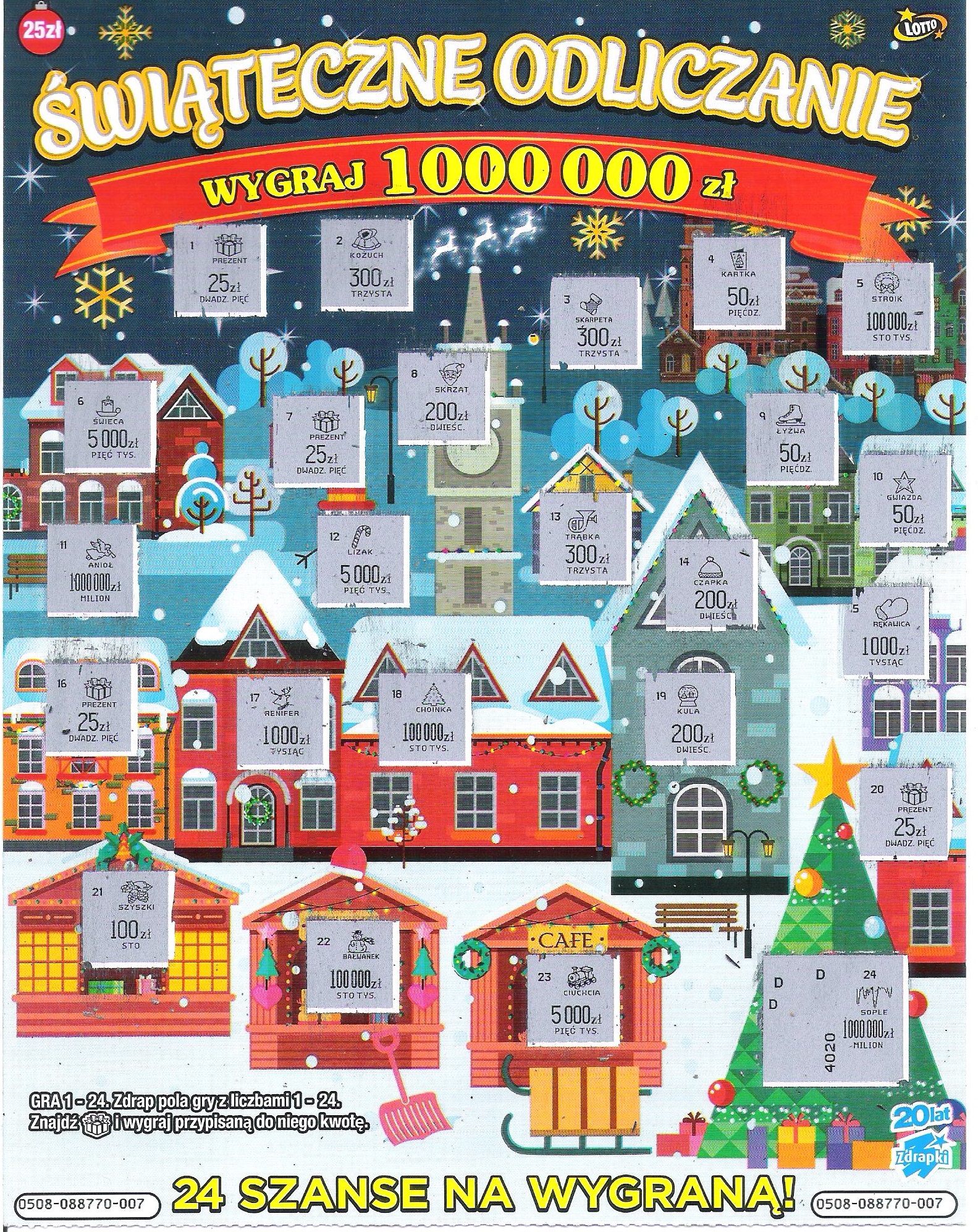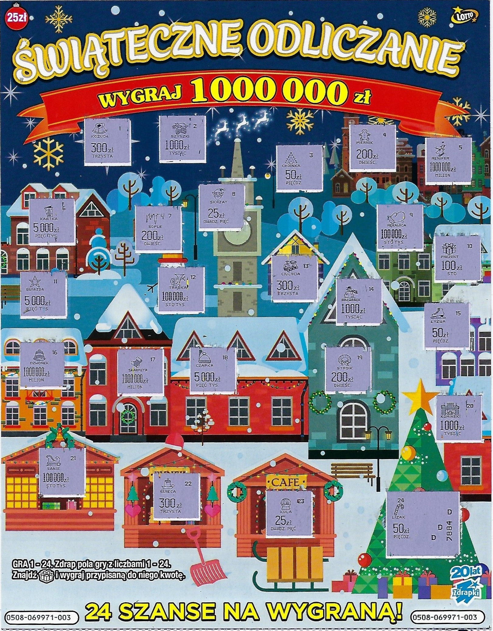 Wieczorkiem kupiłam najpierw trzy sztuki, numer 001 okazał się być pusty, w 007 było 25 zł, natomiast w zdrapce numer 003 było 100 zł