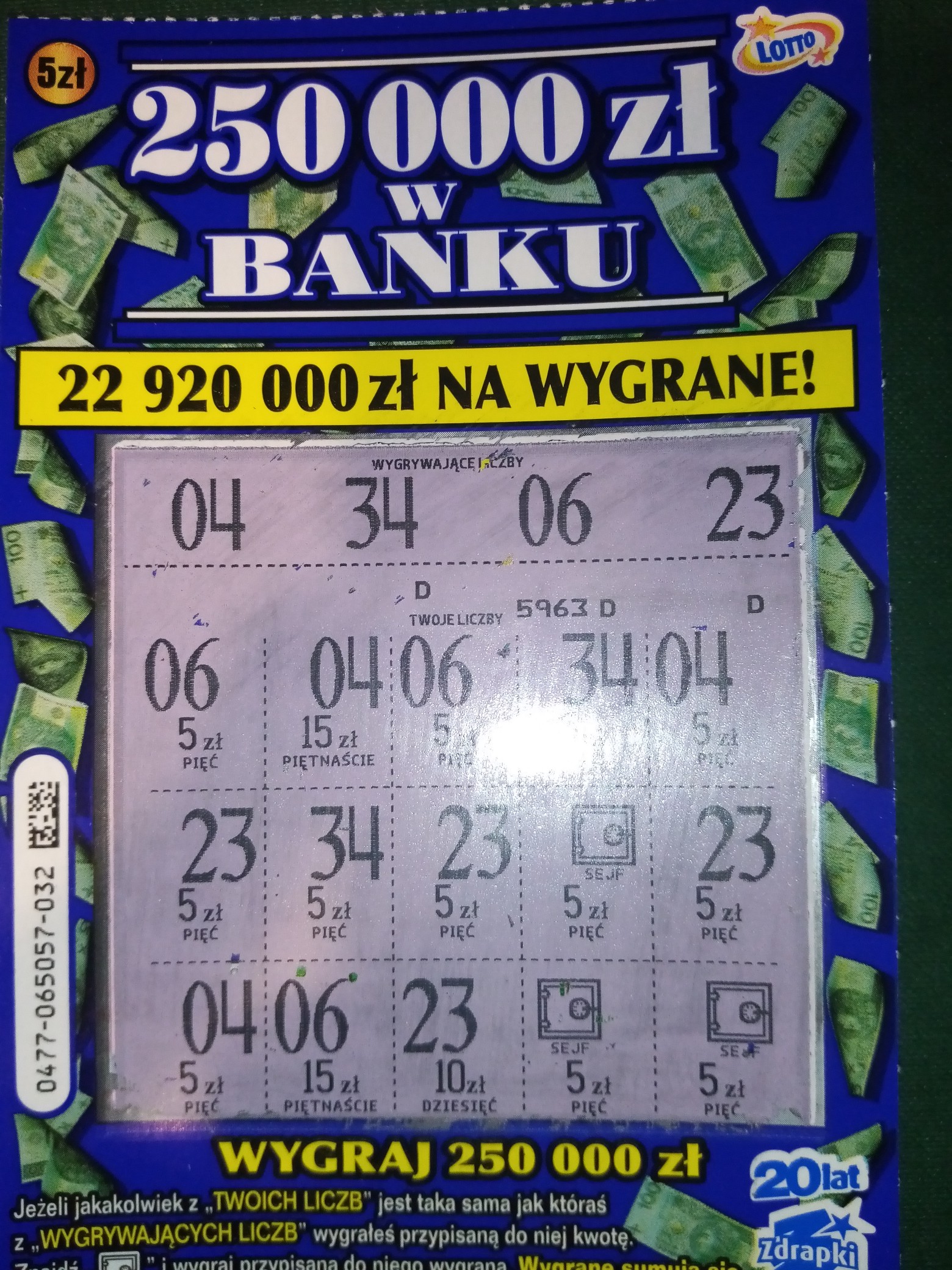 Gratulacje , ładna wygrana i fajnie rozłożona na zdrapce.