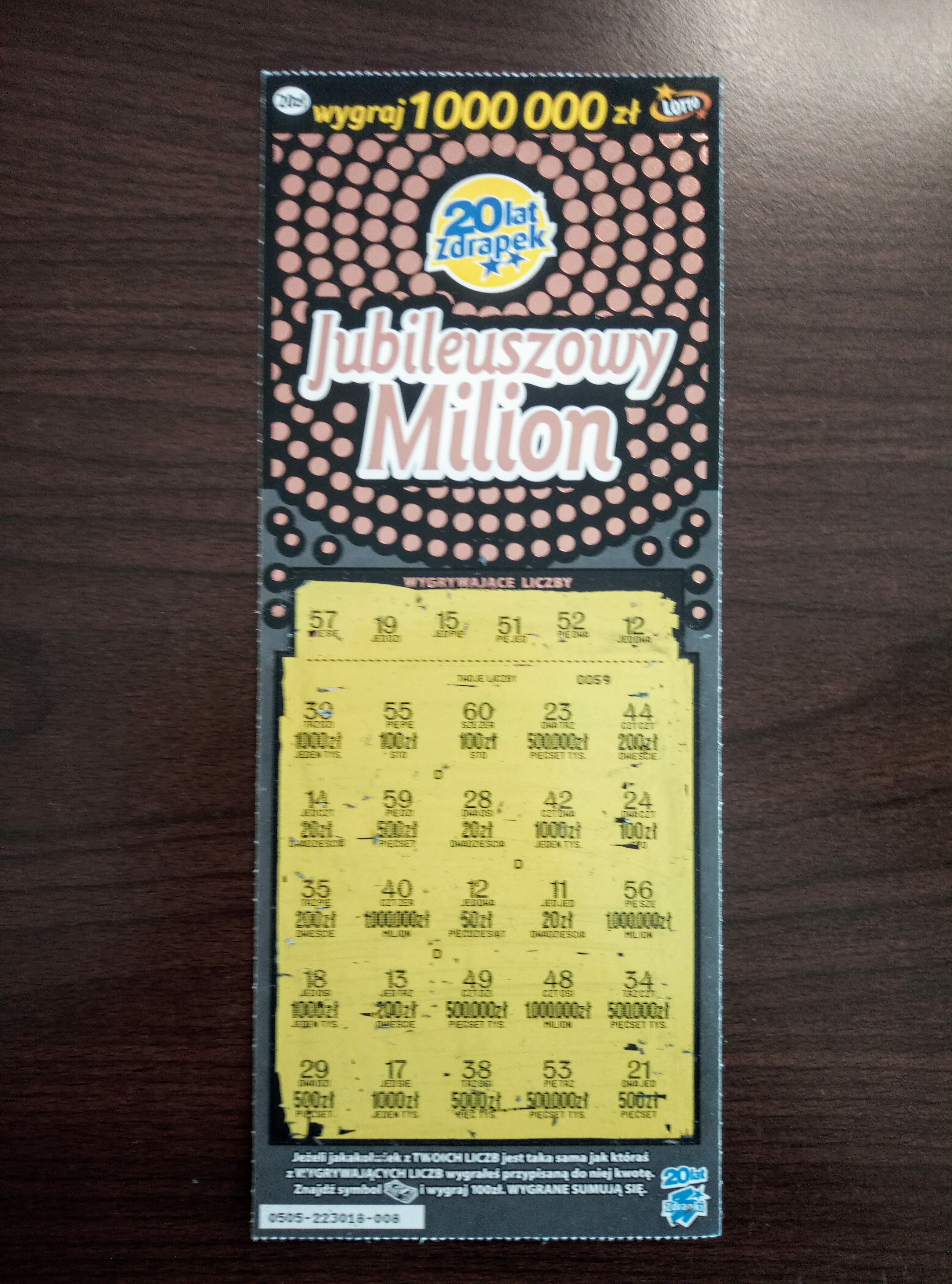 Standardowa 50-tka zdrapana z rana