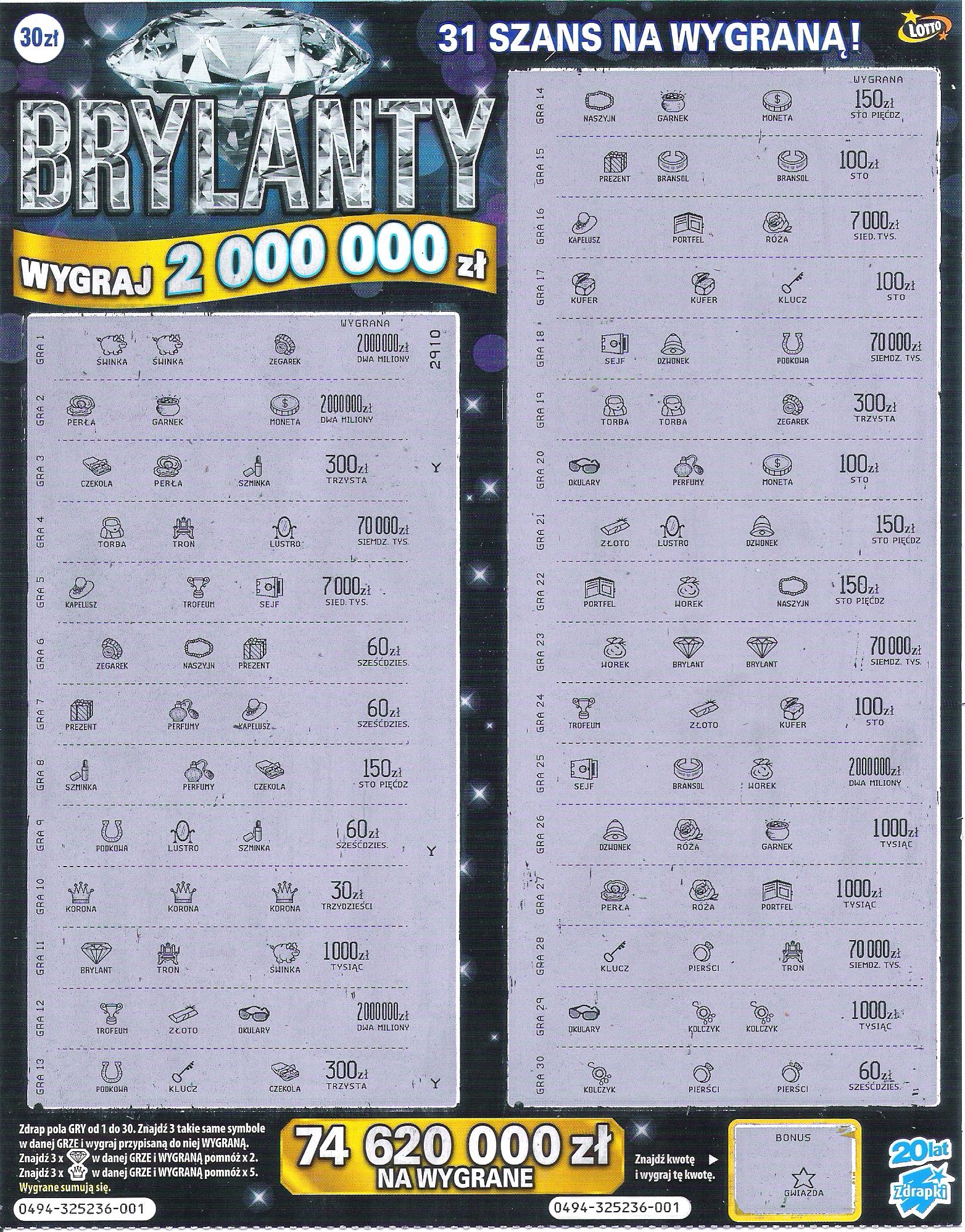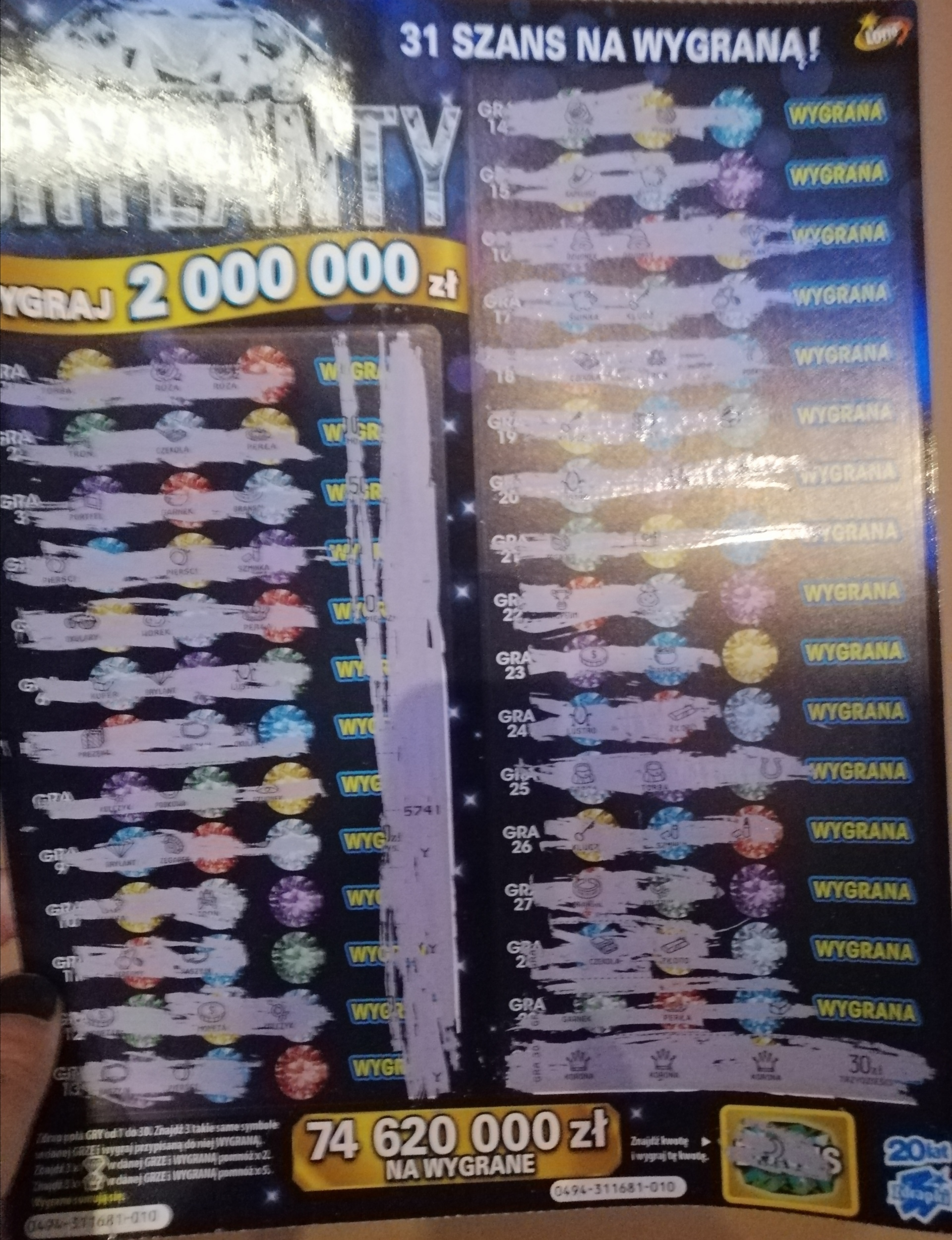 Ja wczoraj wzięłam nr 1 i miałam 100zl . Dziś ponownie wzięłam nr 1 z innej paczki i już pusto było.