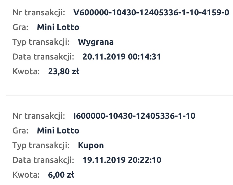 Typ transakcji: Wygrana