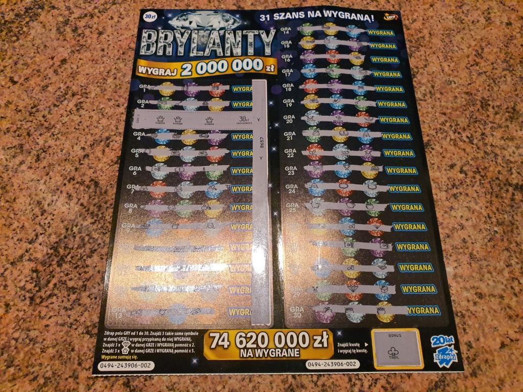 Wymieniając zdrapki rano wzięłam z przebranej już paczki ( do wyboru były trzy sztuki, 004,009,010) dwie zdrapki. W numerze 004 było 30 zł natomiast w 009 było 100 zł