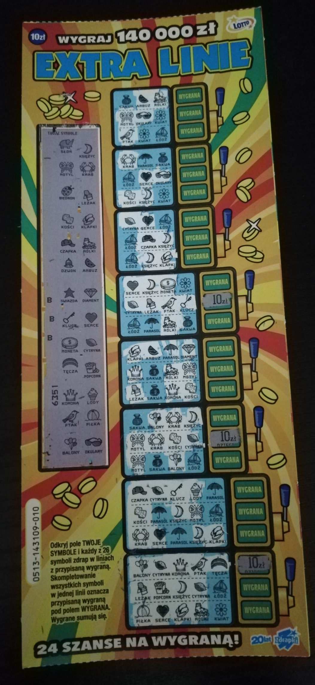 W innej kolekturze w nr 013 20 zł, a w nr 023 30 zł. Póki co do przodu