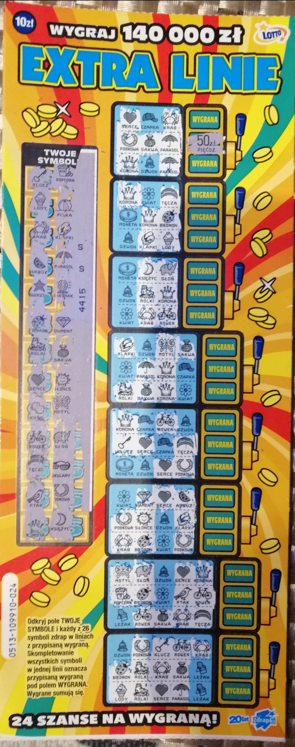 Ogólnie lubię zdrapki, przy których jest trochę zabawy. Dlatego zawsze wybieram Krzyżówki, WinGo itp. Z tego samego powodu spodobała mi się zdrapka Extra Linie. Z reguły jak ją brałem to był zwrot lub 20 zł, ogólnie w większości sytuacji coś wygrywałe, ale dzisiaj zdrapka pobiła mój własny rekord