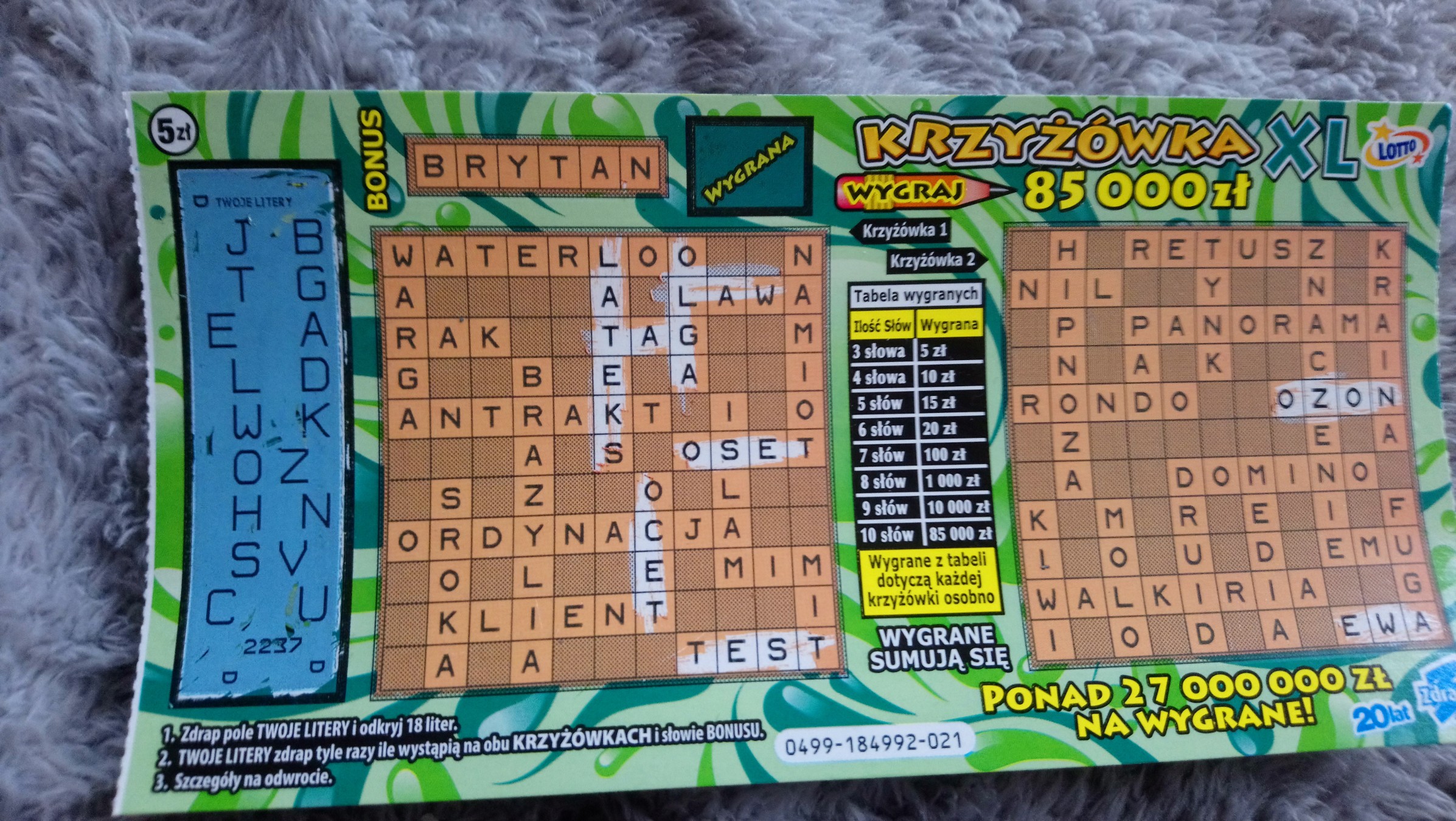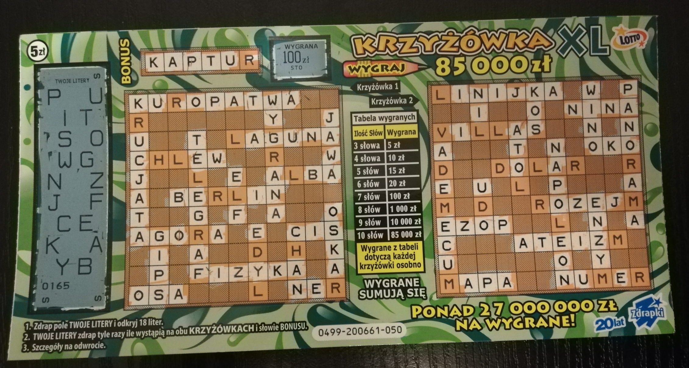 Ostatnio wpadła mi w tej zdrapce 100, szansa 1:500 więc już nawet nieźle
