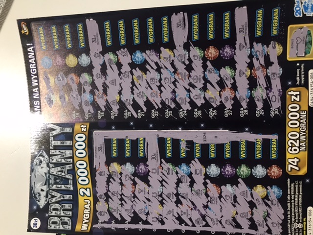 Wczoraj kupiłam dwie ostatnie zdrapki nr 008 oraz 009, w obydwu było po 60 zł