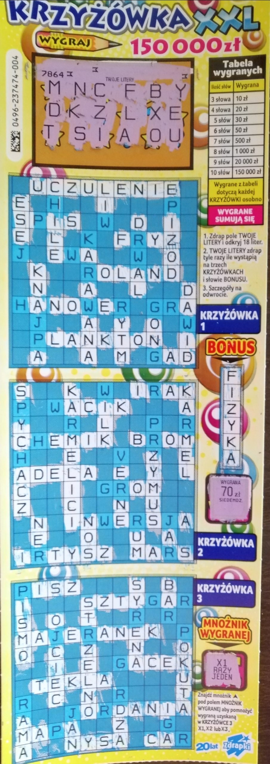 Z nowej paczki w nr017 w drugiej krzyżówce wpadło 20 zł