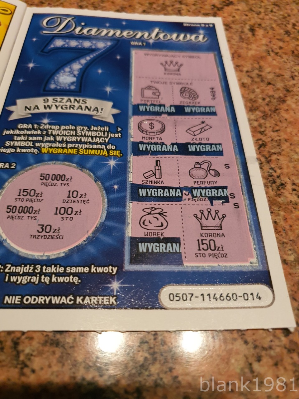 Dziś wzięłam jedną sztukę, nr 014, w którym trafiłam 60 zł