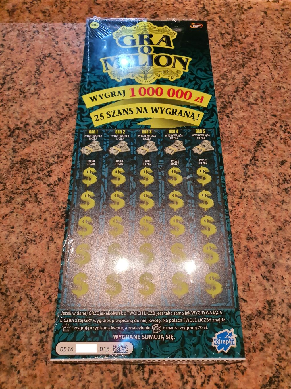 A czemu numer paczki zamazany? Po stylu drapania i tak poznamy, że to twój milion na głównej lotto będzie wisiał