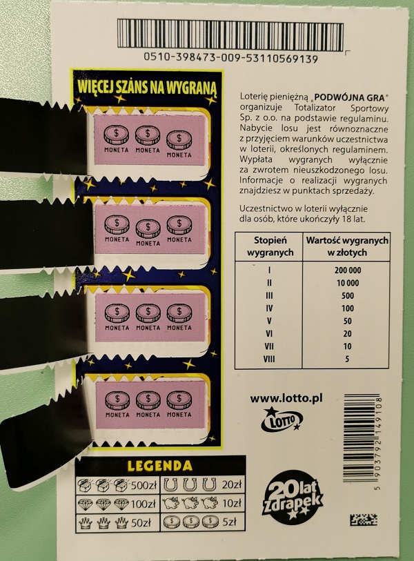 U mnie jak na razie 2X20zł w tej zdrapce.