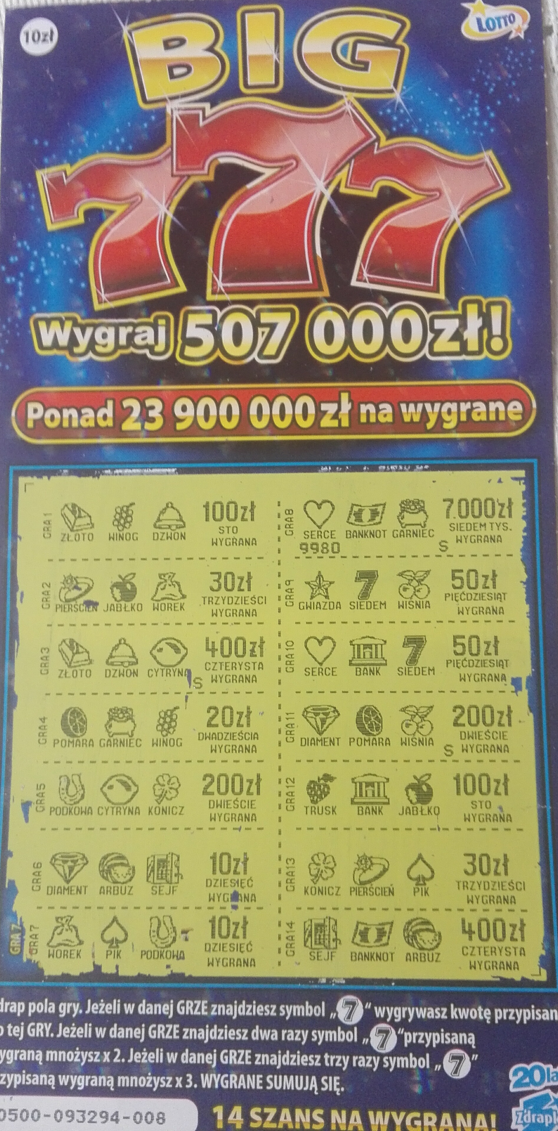 W piątek z przebranej już paczki przy zakupie jednej sztuki pod nr 007 wpadło 50 zł