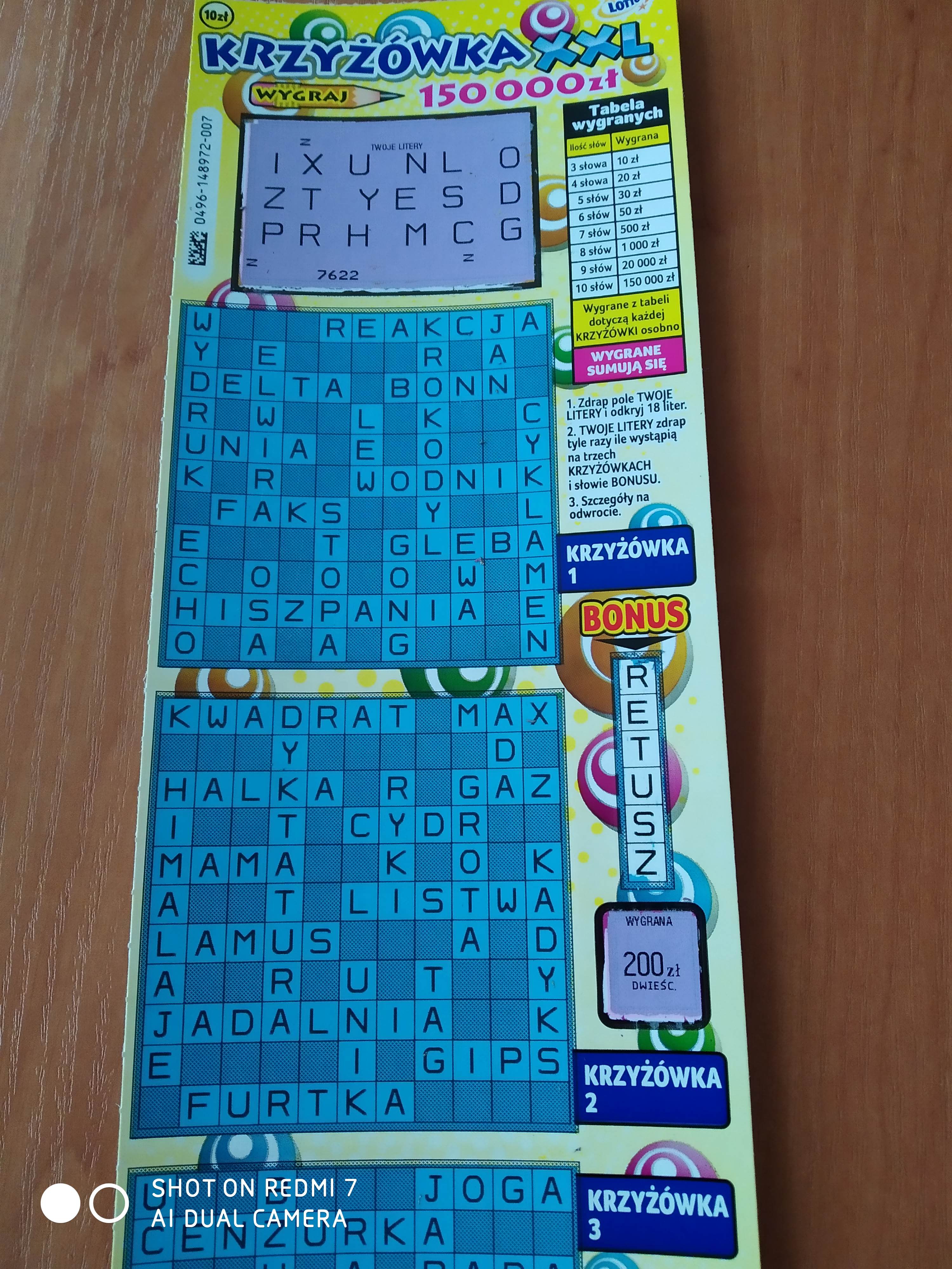 U mnie też w nr 009 20 zł w bonusie słowo ZALOTY