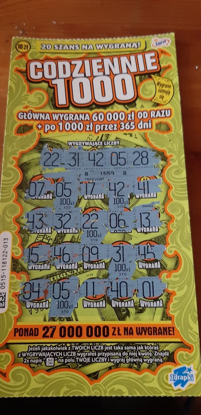 Może wygrał w jednej przypadkiem i potem na fali farta i łatwej, szybkiej gotówki wykupił wszystkie zdrapki w miejscowych kolekturach