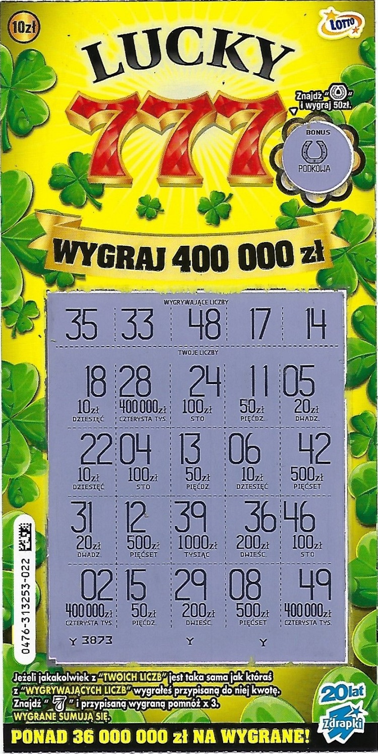Brawo , spoko że się do Ciebie ta zdrapka uśmichnęłatereska1975 pisze: ↑29 sty 2020, 13:14Dawno nie brałam tej zdrapki.Dziś się skusiłam na nr 001.Leżał na ladzie w kolekturze, jakoś wpadł mi w oko i wzięłam do równego rachunku , opłaciło siętrafiłam 50 zł