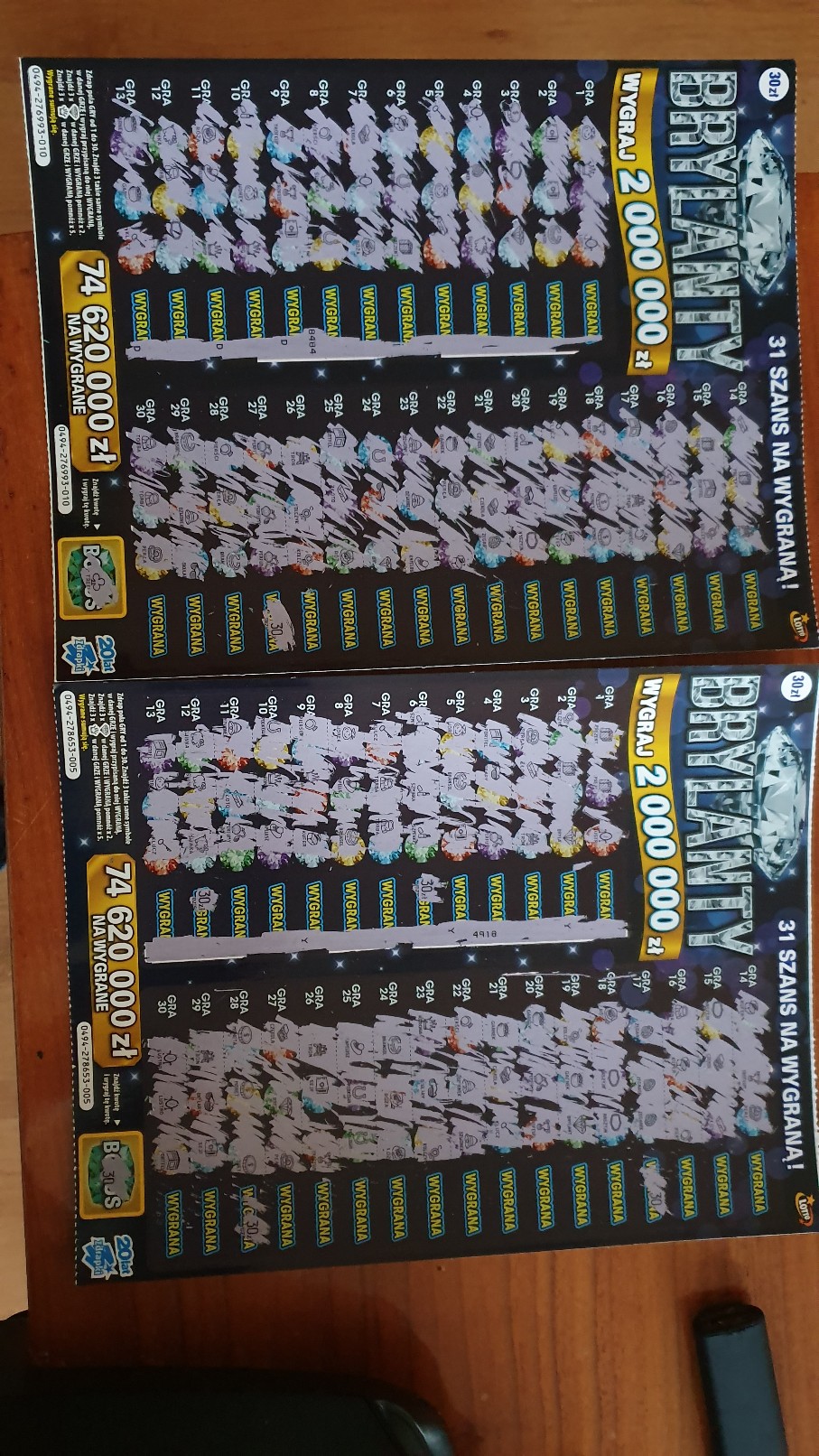 Dziś wymieniając zdrapki w sumie wzięłam trzy sztuki Brylantów, nr 009 pusty, z tej samej paczki w nr 003 było 100 zł oraz w innym miejscu w nr 001 było 60 zł