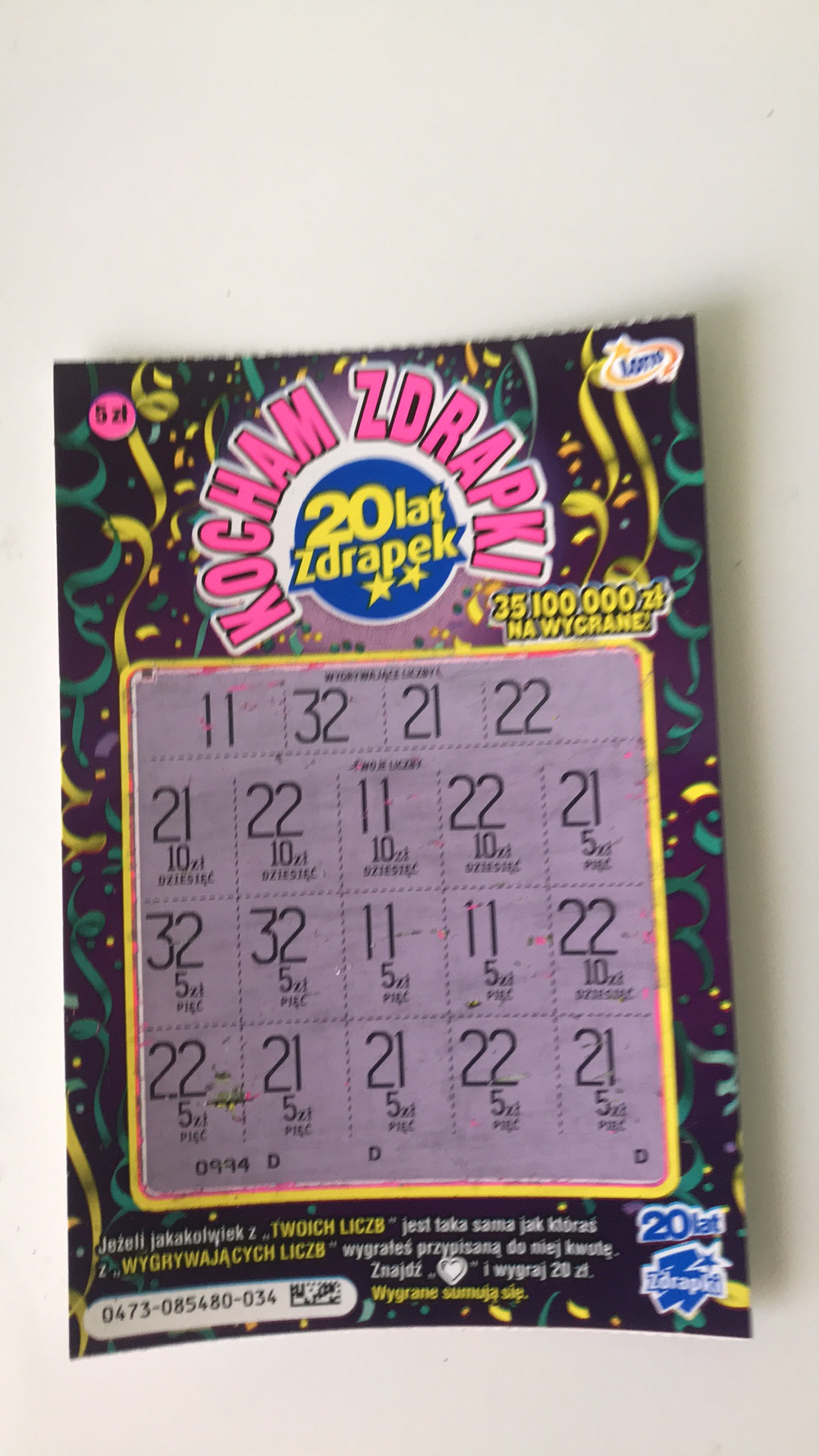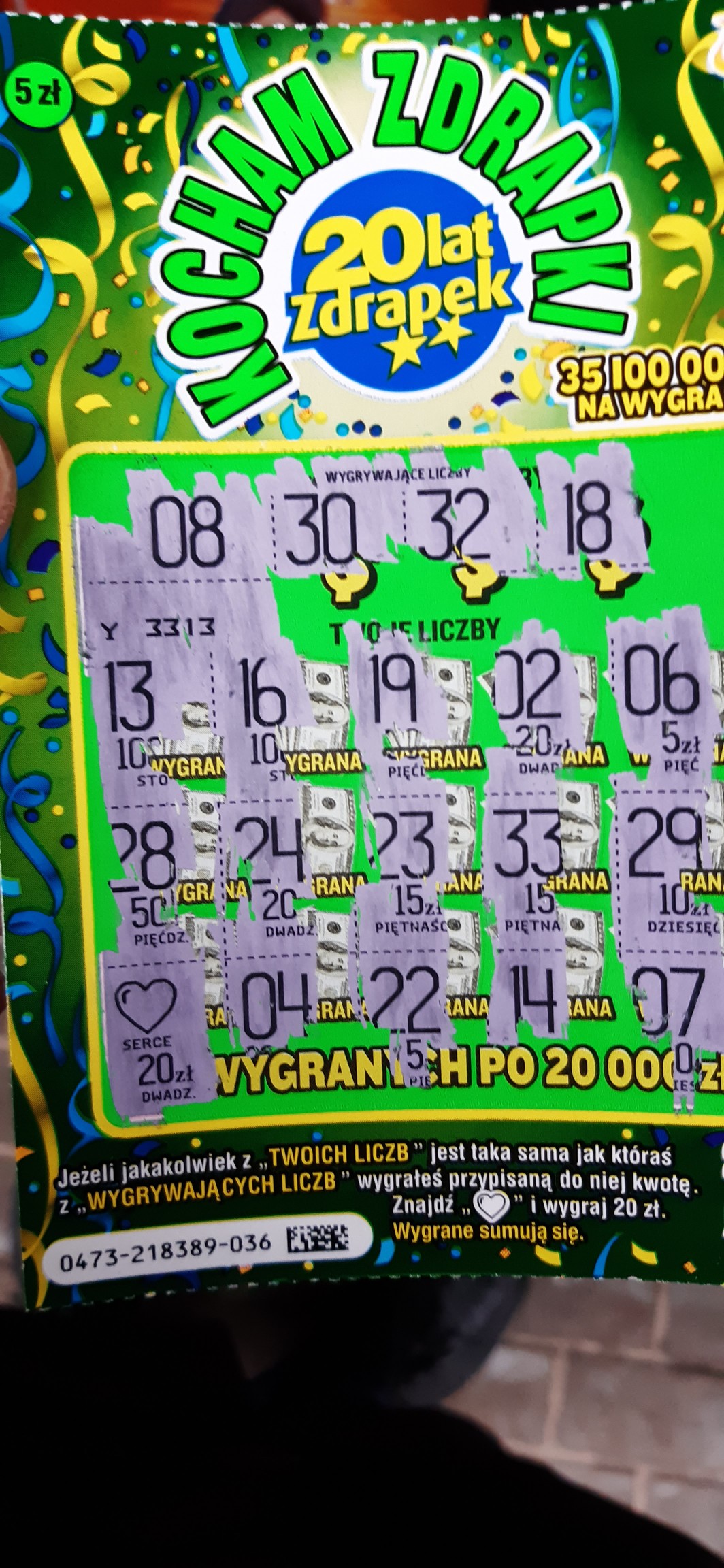 Nr. zdrapki 030 wygrana 5zł
