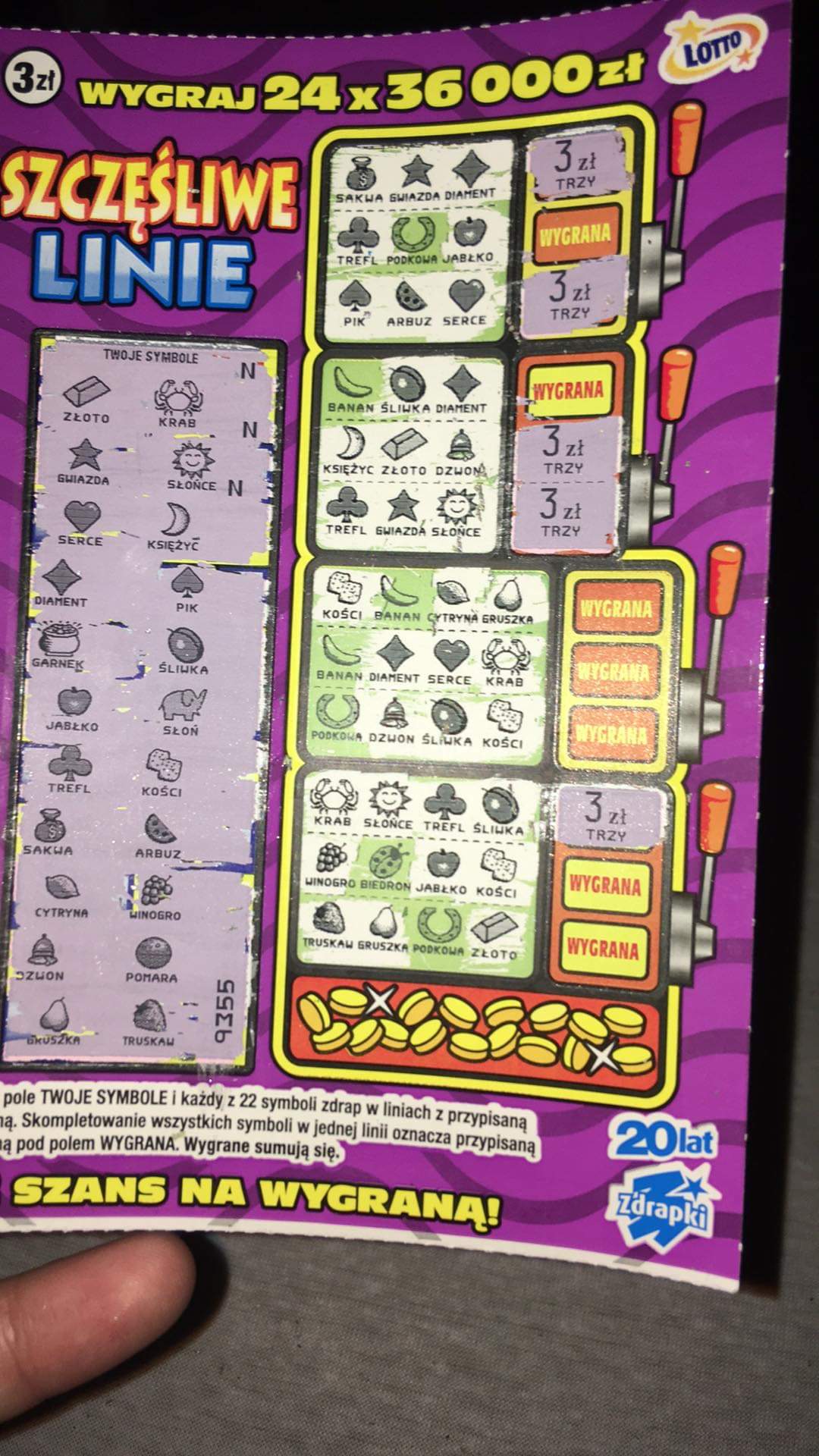 Asik raczej jedna po drugiej nie wpadło tobie 36 zł. Na ile sztuk takie wygrane? Ja osobiście 36 zł nigdy nie trafiłem.