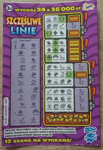 No zazwyczaj z mamą kupujemy sobie po 2 zdrapki. W mojej 3zl, a mama wylosowała taki okaz