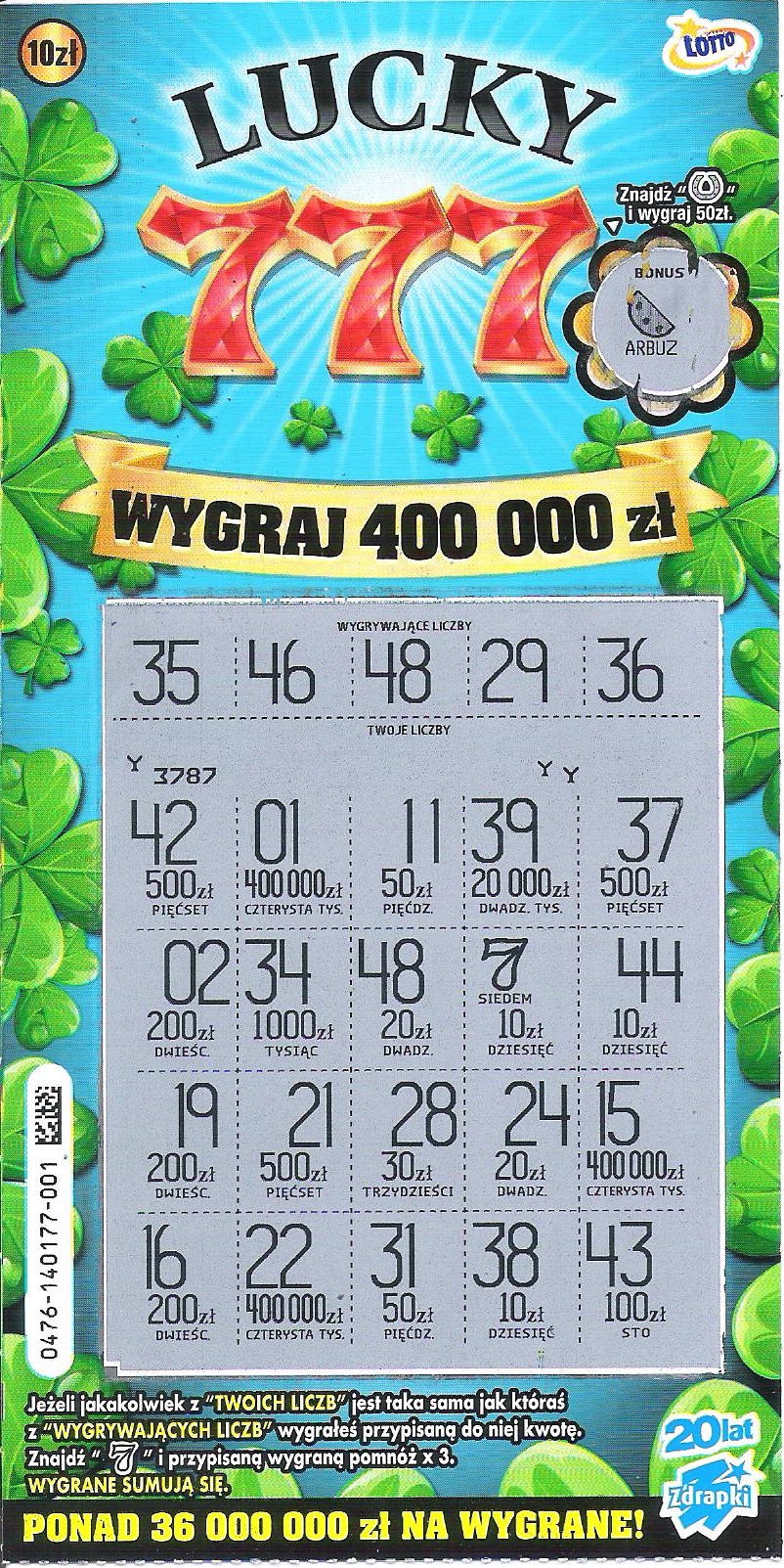 dziękimzielakzielakm pisze: ↑29 sty 2020, 15:06Brawo , spoko że się do Ciebie ta zdrapka uśmichnęłatereska1975 pisze: ↑29 sty 2020, 13:14Dawno nie brałam tej zdrapki.Dziś się skusiłam na nr 001.Leżał na ladzie w kolekturze, jakoś wpadł mi w oko i wzięłam do równego rachunku , opłaciło siętrafiłam 50 zł