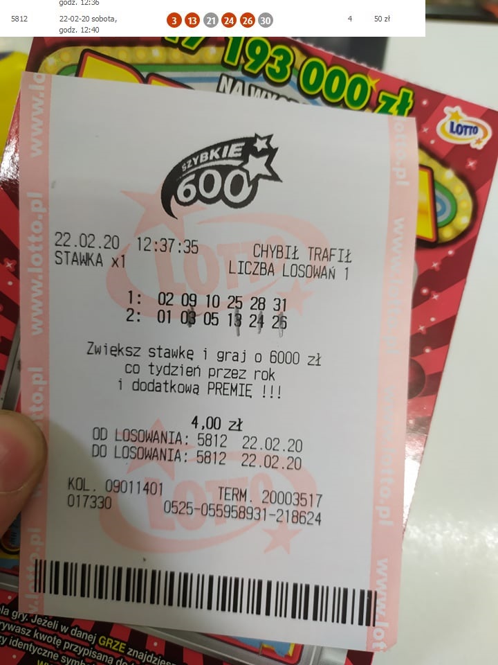 Kupiłam 1 zakład na 10 losowan (20zl), a odebrałam 58zl. Dodaje zdjęcie wypłaty (oprócz tego wypłata ze zdrapek)