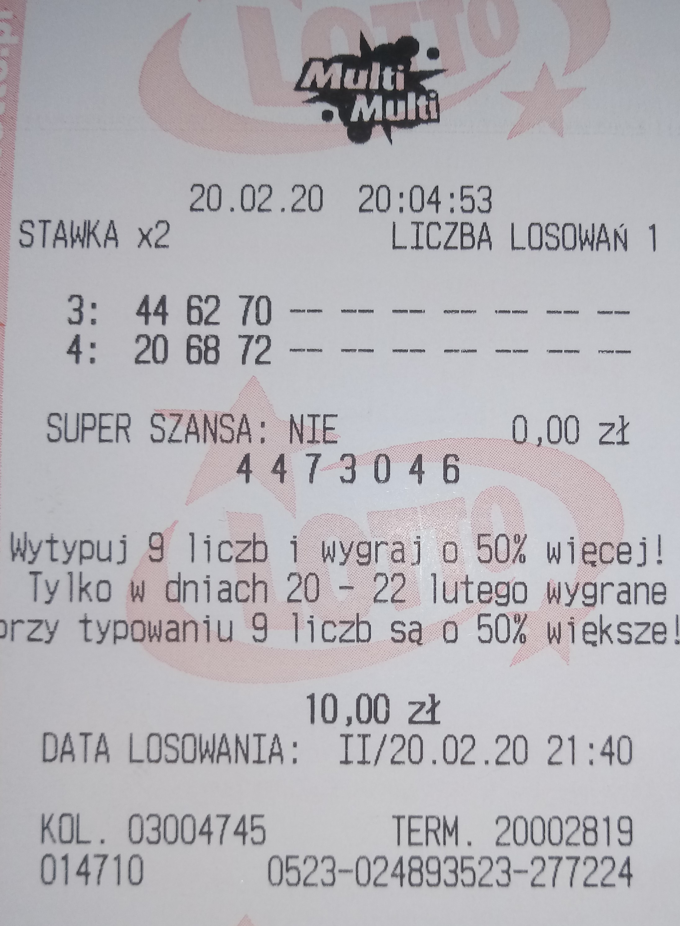 No szkoda, choć i tak fajna niespodzianka, bo zaczęłam się przerzucać z keno na Multi,