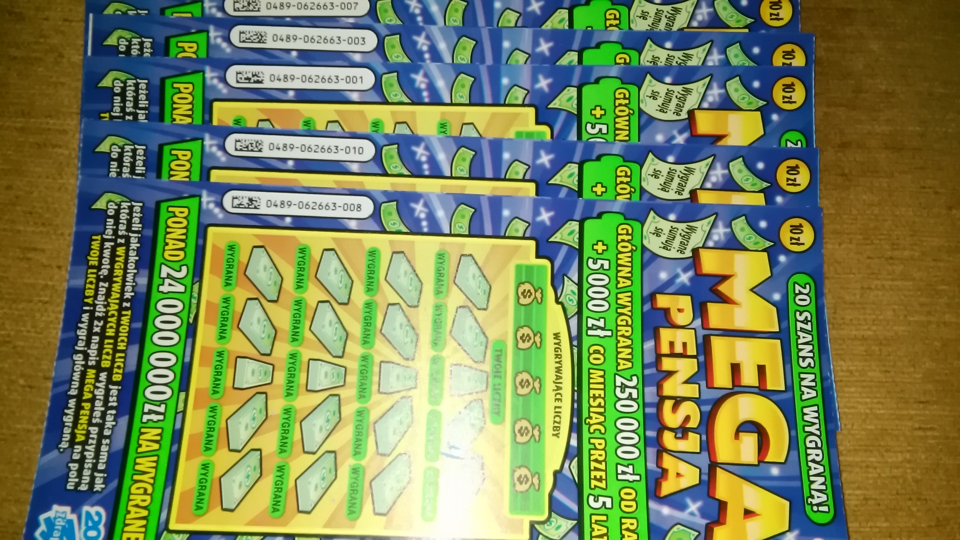 Zakupiłem 6 sztuk. Wynik to 1x50zł, 1x10zł czyli na zero. 50 zł w numerze 006. Zostało jeszcze 9 sztuk w tym punkcie i normalnie pewnie już bym odpuścił po trafieniu 50 zł, ale że to polowanie na główną to zapewne wymienię wygraną na kolejne zdrapki.