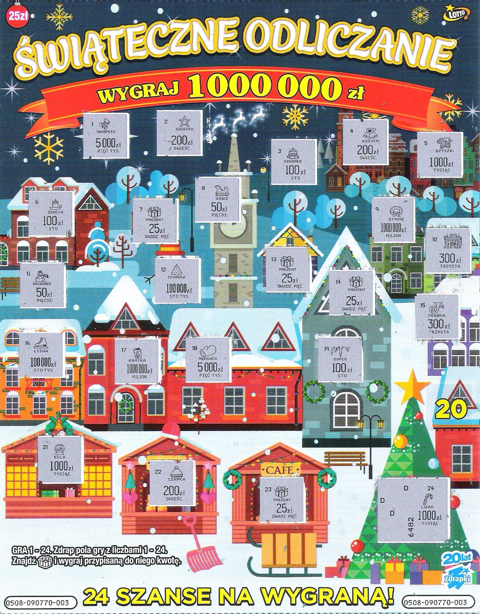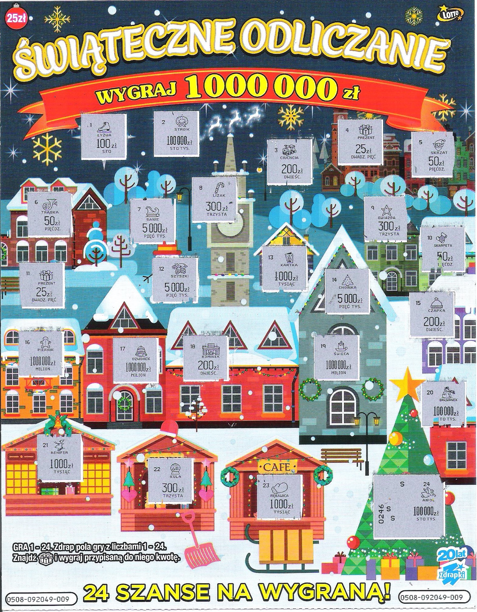 na 6 zdrapek 1x25 1x50 i 4 puste. W 9 raz trafiłam za to 100zl