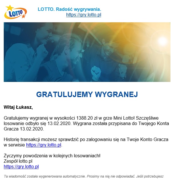 Od tamtej pory nie wygrałem już nic. Moje 5 minut chyba się skończyło. Odezwę się jak coś się ciekawego wydarzy. Pozdrawiam graczy
