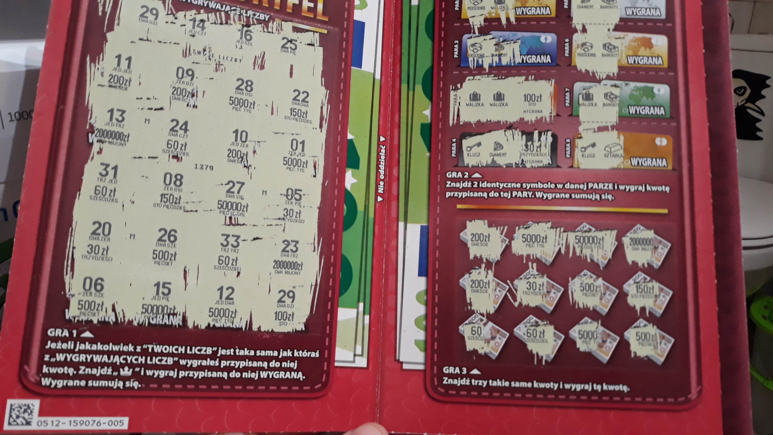 200zl. Pierwszy raz miałem coś w tej zdrapce, a parę już kupiłem.