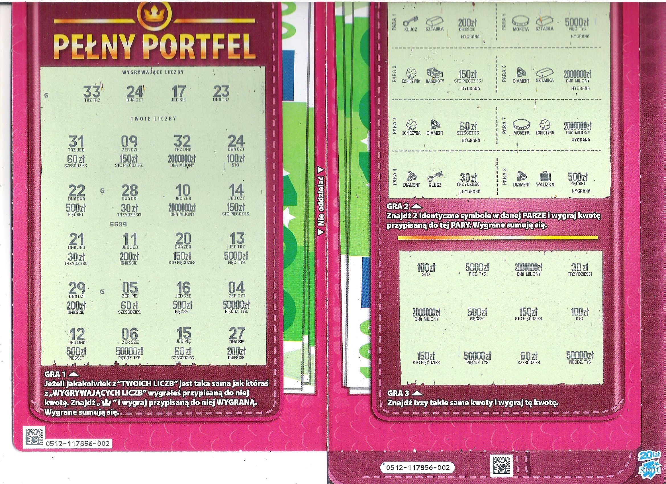 Dziś mam ciekawy zdrapkowy dzień. W dwóch miejscach wzięłam nr 25 z Pełnego Portfela. 100 i 60 zł