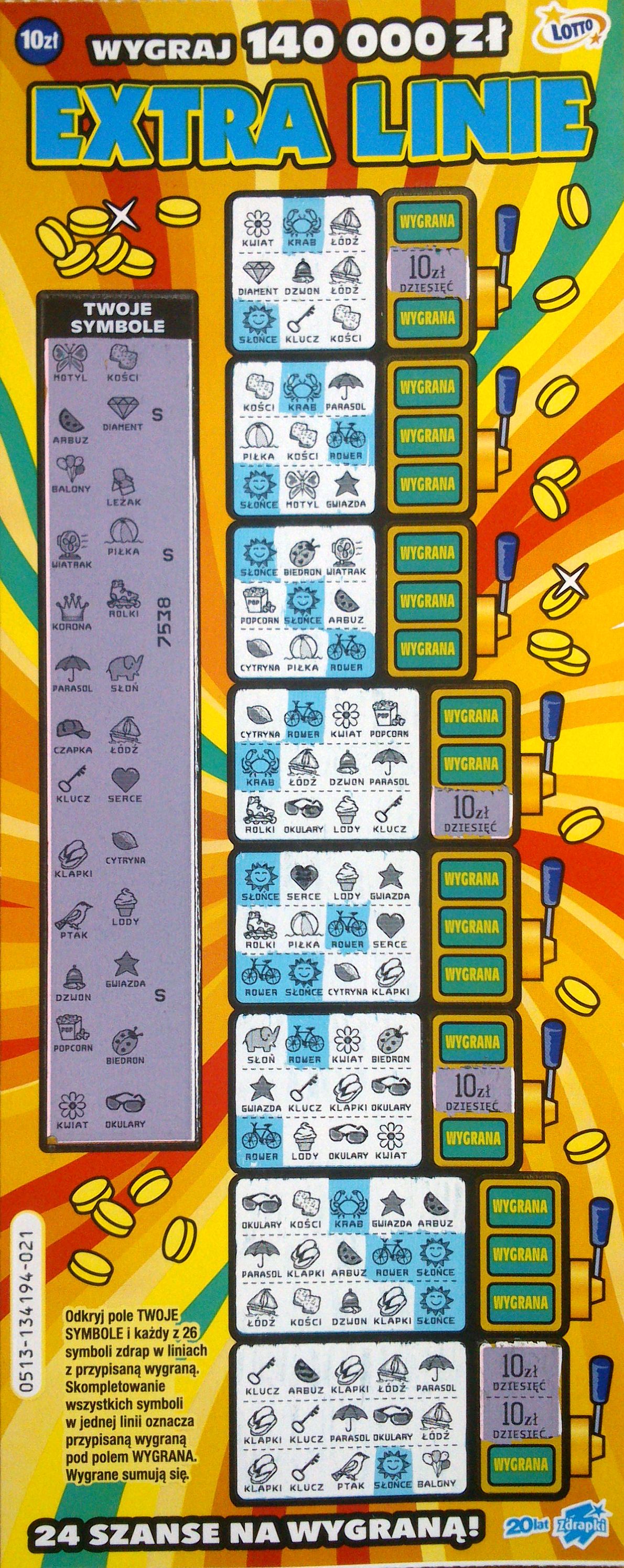 Ja spróbowałam jeszcze raz szczęścia w innym miejscu ale już delikatnie (bo najczęściej jak coś wygram za pierwszym razem i chcę wygrać zaraz więcej to większość tracę). Wzięłam brylanty z nr 10 i było 30 zł. I Ekstra linie 11 - było 30 zł i 12 -pustak. Numeru 10 z tej paczki nie było a chciałam go kupić w celu sprawdzenia teorii o szczęśliwych dziesiątkach. Pójdę gdzieś wieczorem i spróbuję jeszcze raz bo do trzech razy sztuka, niby.