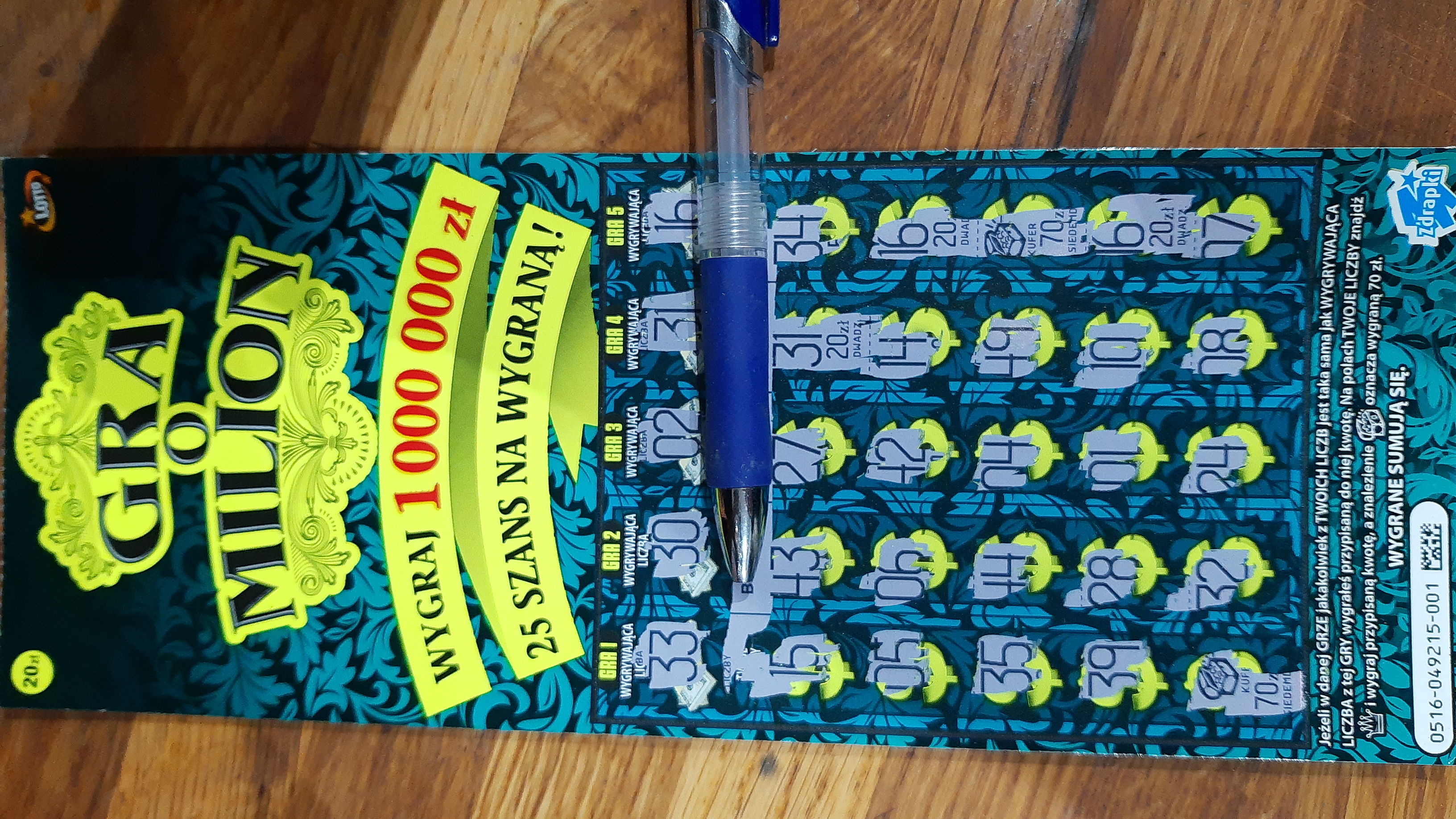 Przyznam Ci rację, faktycznie posucha.Bardzo lubię tą zdrapkę ale jak przedwczoraj byłam w kolekturze to leży ta sama paczka, z której wstawiałam wygraną 10 marca. Z braku wyboru kupiłam Mój Pierwszy Milion ale nie powiem opłaciło się