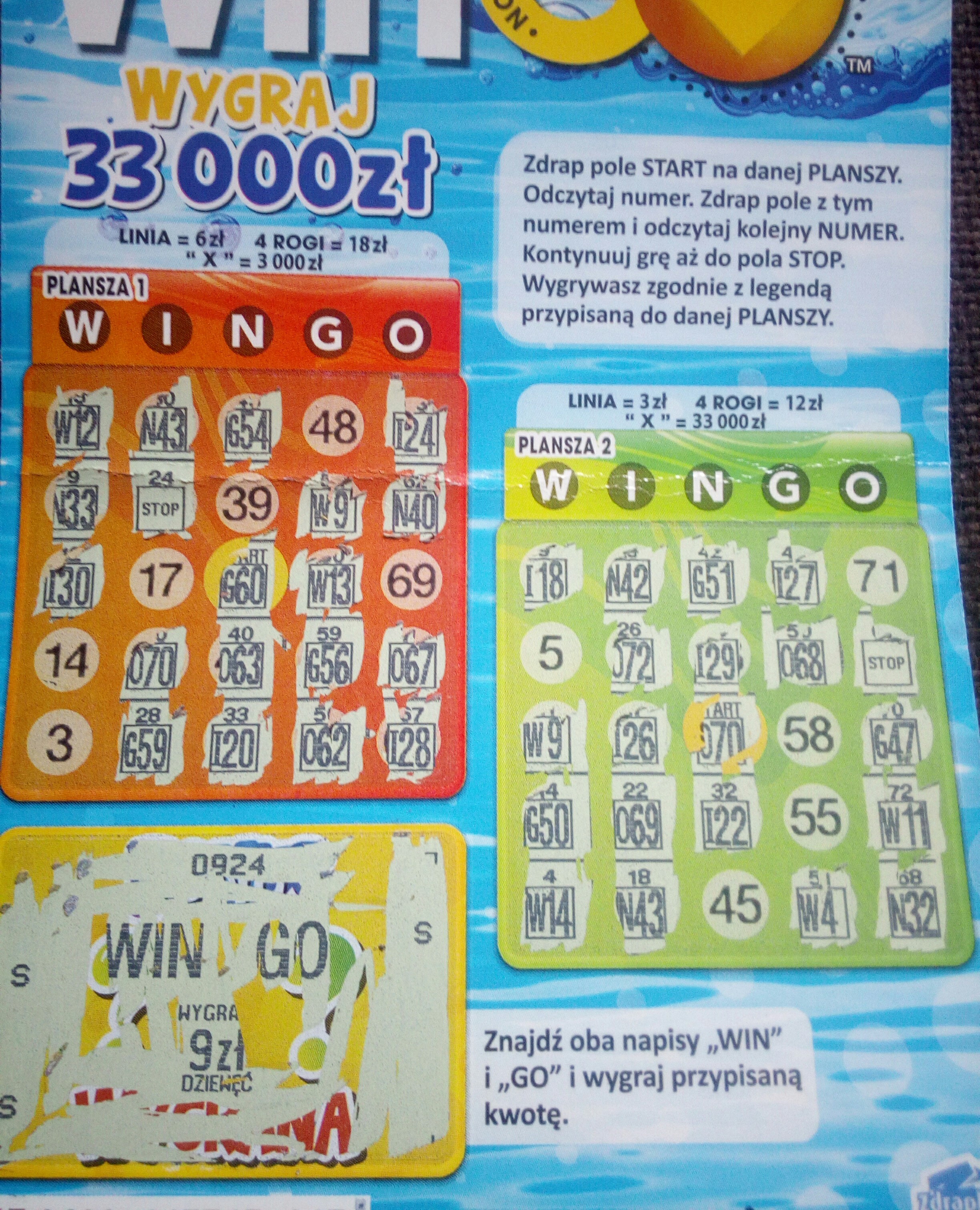 Wczoraj odbierałem 3 zł z Krzyżówki i wziąłem Szczęśliwe Linie. Ale pani kolektorka powiedziała, że ma też Wingo. Jak praktycznie nigdzie, gdzie pytałem u siebie w mieście, jej nie było od dawna, tak nagle się pojawiła (przynajmniej w kolekturze obok której mieszkam). Być może przerzucają paczki w lepsze miejsca, bo jednak całkiem sporo jeszcze nakładu zostało. Także jak ktoś lubi tę zdrapkę to warto popytać czy się znów pojawiła. Wziąłem dwie sztuki i trafił się jeden zwrot. Trzeba będzie czasem podrapać.
