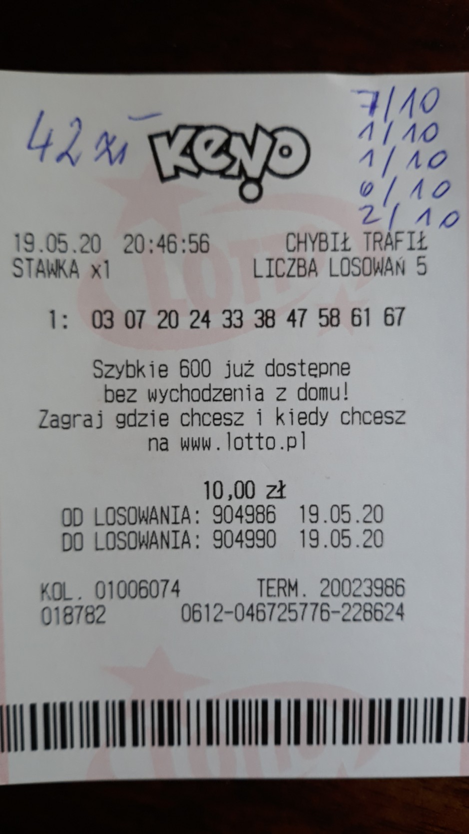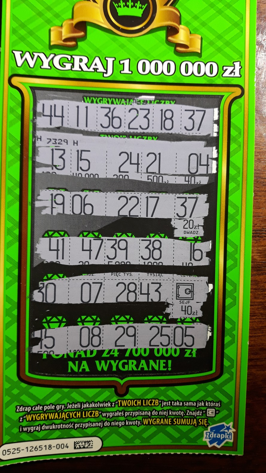 Mateusz, wybacz mi te zdjęcie z Keno, proszę, ale to było takie fajne tak trafić coś w 4 zakładach na 5, że nie mogłam się powstrzymać przy okazji zdrapki.mateusz721605 pisze: ↑20 maja 2020, 5:43no to widzę, że raczej Ty nie czytasz tej lektury, gdyż akurat tej zdrapki nie jest podany zwrot.Chaberek pisze: ↑19 maja 2020, 23:05Tak, orientujemy się i ty też możesz się zorientować ponieważ wszystko jest opisane w: Wykaz forów, Zdrapki, Dyskusja ogólna. Jest tam dużo interesujących tematów miedzy innymi ten o zwrotach z paczek. Polecam lekturę.
