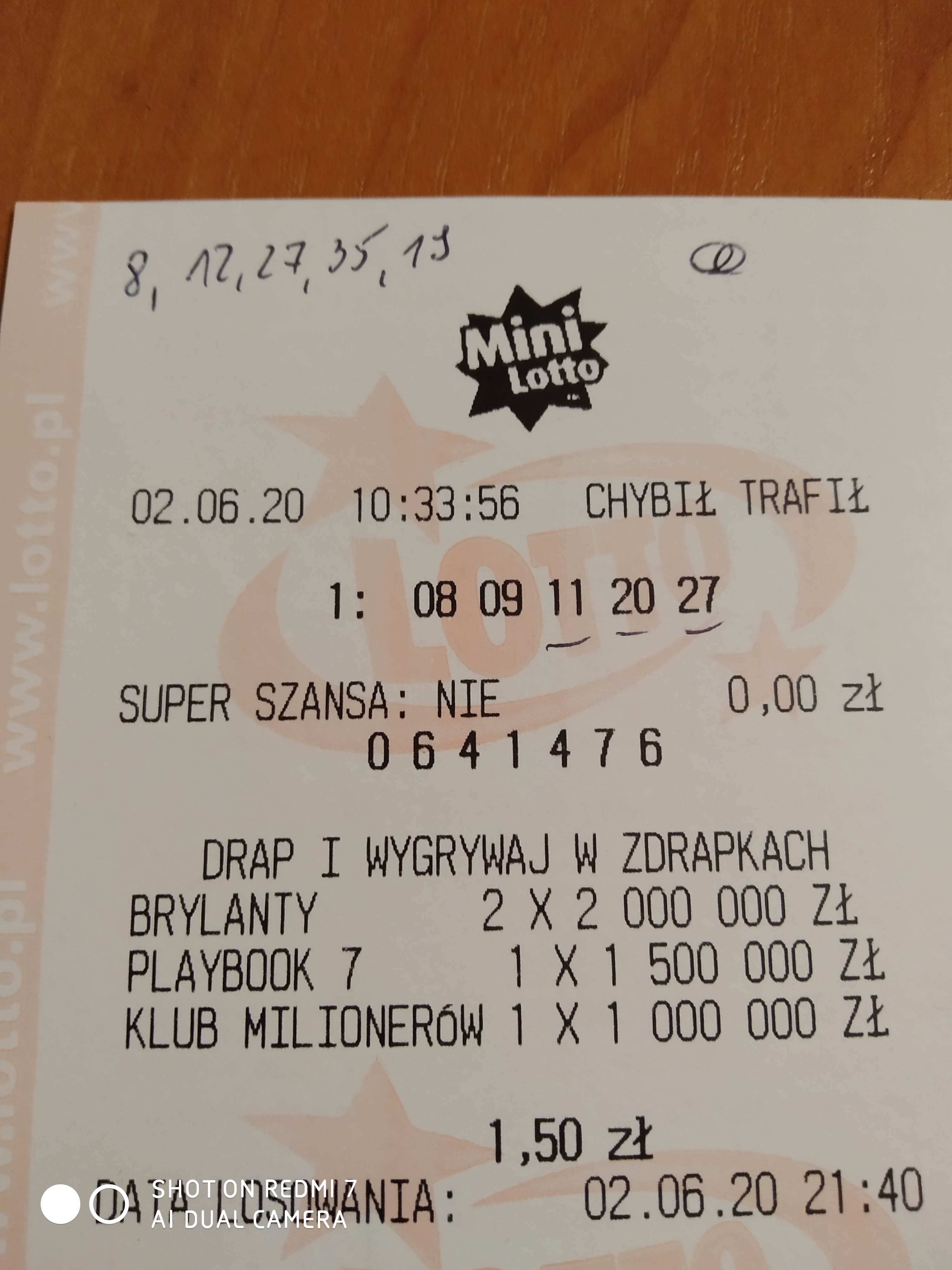 Dziś znowu mały eksperyment czyli powtórzyłem kupon z jednym zakładem CT w którym nic nie weszlo z wczoraj i dziś weszło 2/5.Niestety dziś nic na CT nie puszczałem ale poszukam kuponu z 2 lub 3 dni i puszczę jutro.Sorki za gryzmoły na kuponie ale to tylko na podglad ;) Bo tak jak pisałem wcześniej zdarzało mi się,że kupony puszczone dzień,dwa lub trzy dni wcześniej dawały 3/5.Nie chce zakładać nowego tematu bo jeśli coś wejdzie sporadycznie to wtedy wrzucę tu dla przykładu.