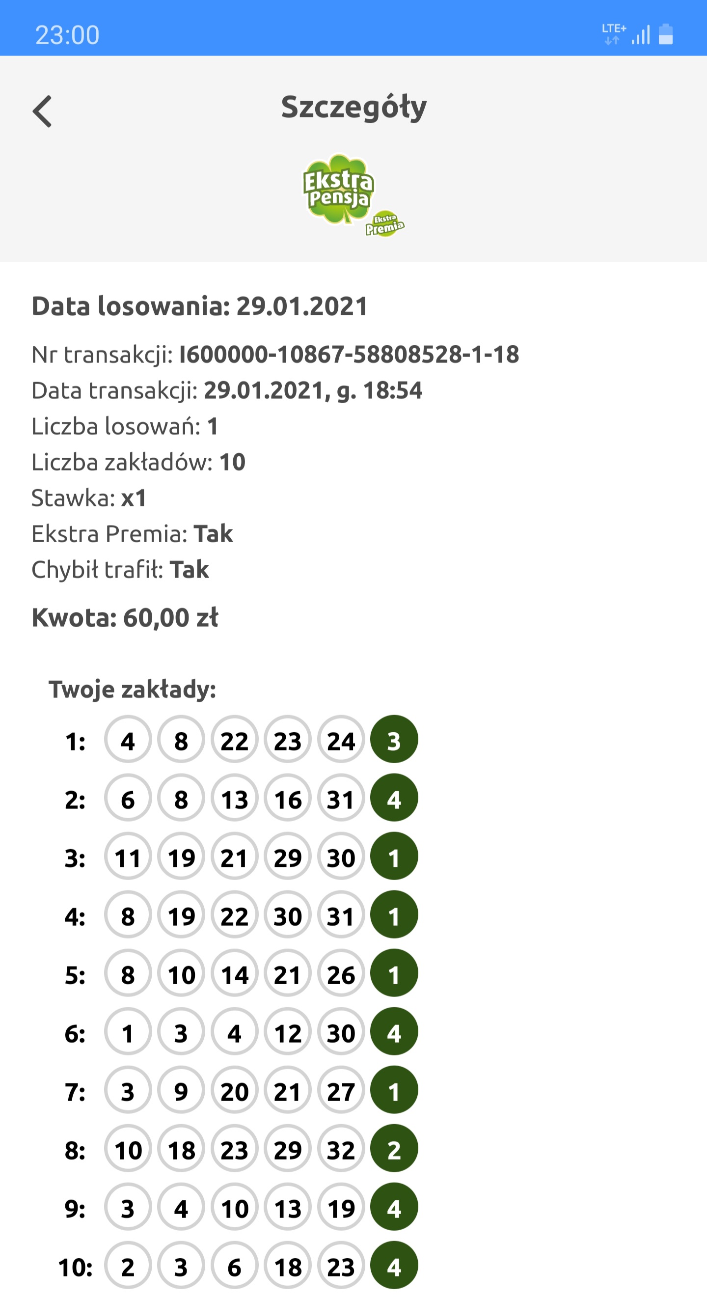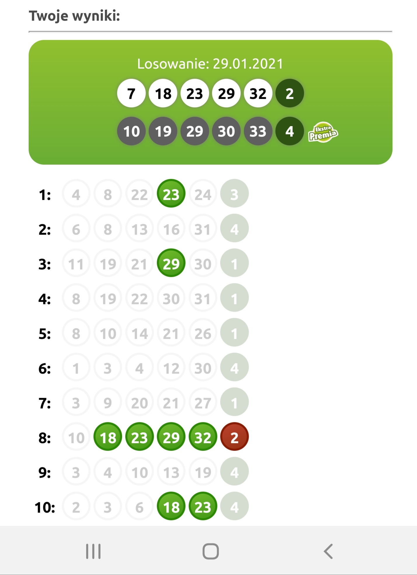 No i czasem trzeba wierzyć w to co dają i jak system z chybił trafił daje liczby to nie kombinować. Przy pierwszych liczbach które mi podał system miał bym 3 a może i czwórkę, nie pamiętam dokładnie dwóch liczb. A tak wylosowałem inny układ i dwie liczby.