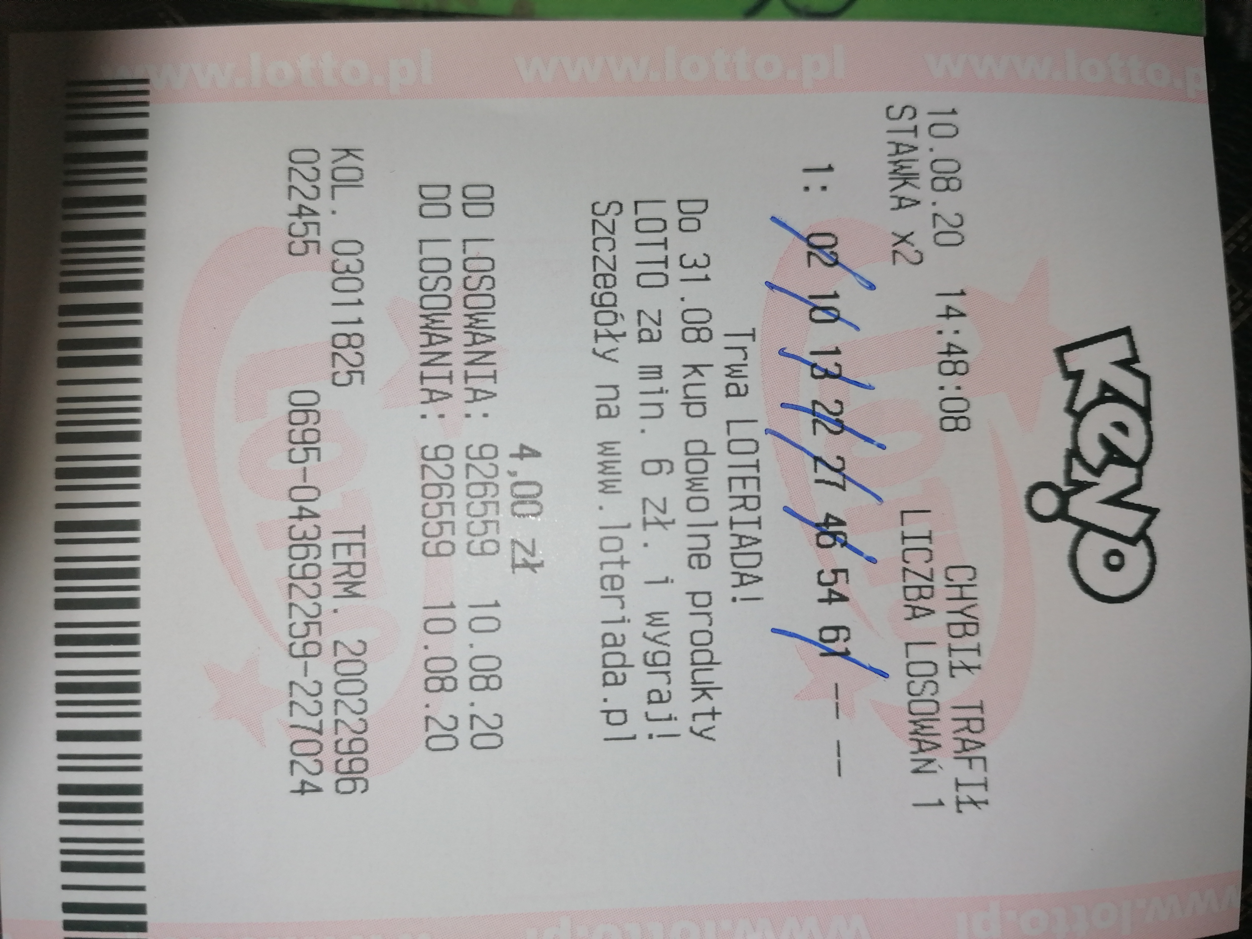 Mi właśnie online lepiej idzie keno i szybkie 600. Te 6/8 w keno to online trafiłam. Jak znajde na meilu potwierdzenie wygranej to wstawie zdjęcie.