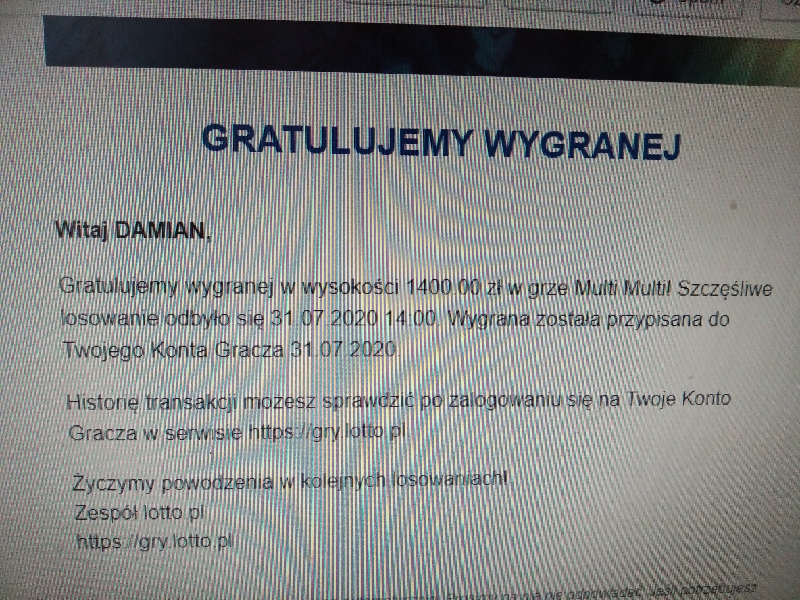 Dziś troszkę wydałem na multi w promocji bo aż 150 zł i choć raz się opłaciło . Miałem 10 zakładów , 10 zakładów na stawce 2 i 10 na stawce 3 bez plusów . Bez stawki udało się trafić 5/5 1400 zł . Ponadto padło 4/5 w stawce 2 - 80 zł ,3/5 - 16 zł i 3/5 na stawce 3 - 24 zł . Podsumowując 1520 zł !!! Oby nie poszły na głupoty