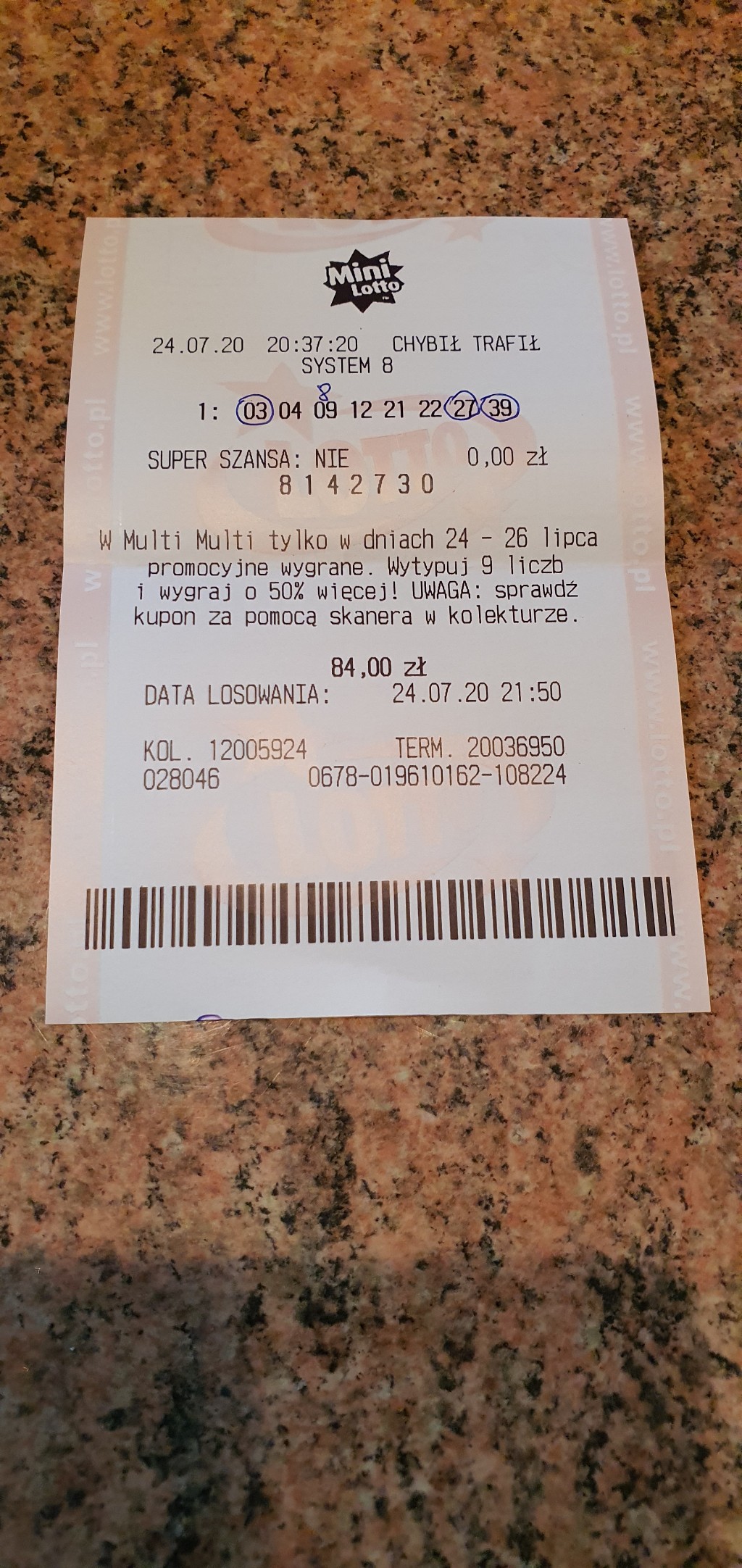 Witam wtrafilam 3/5 systemem na 6 skreslen a trojka jest liczona za 41 zl czyli ile jest wygrane