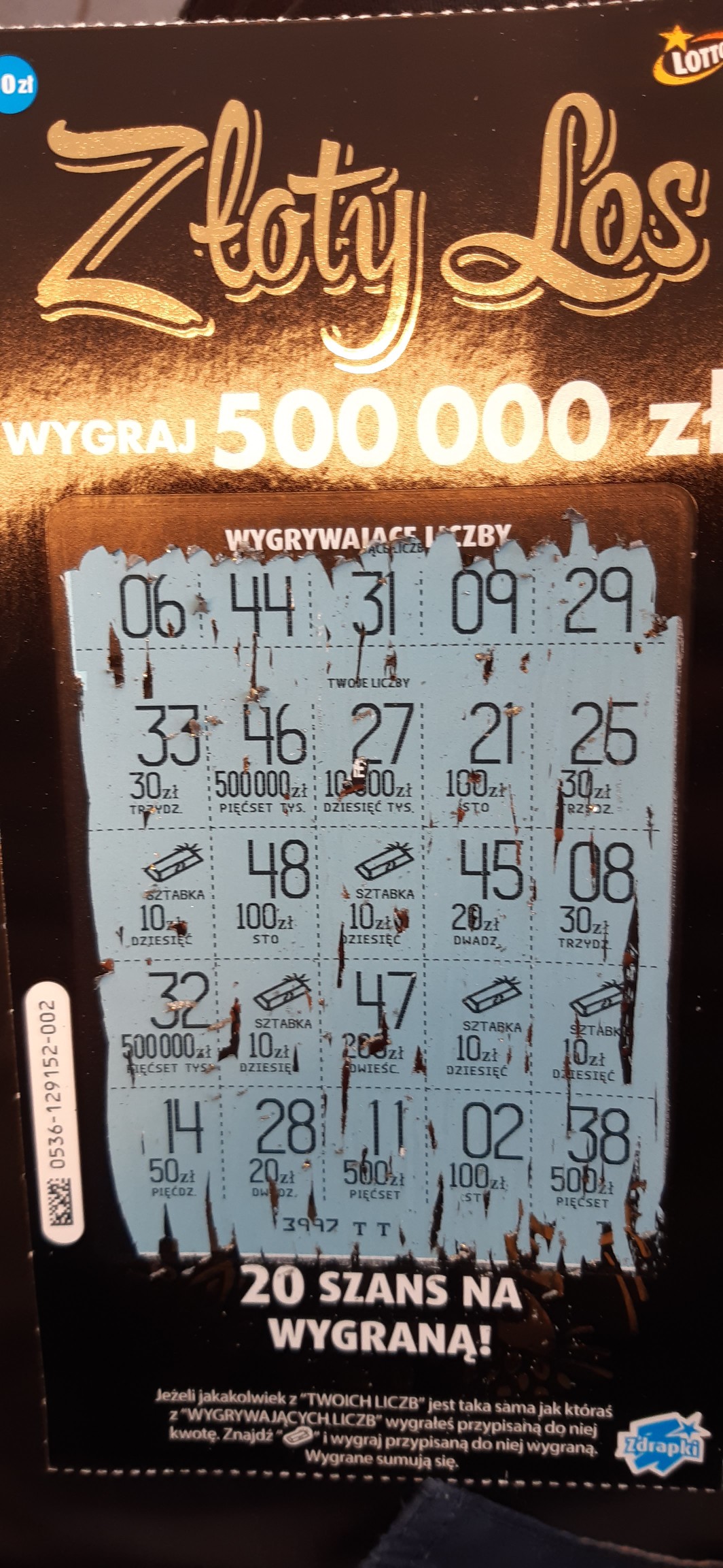 Wymieniając zdrapkę , kupiłem 1 sztukę nr24 i trafiłem 30 złotych rozbite na 2x sztabka i raz liczba