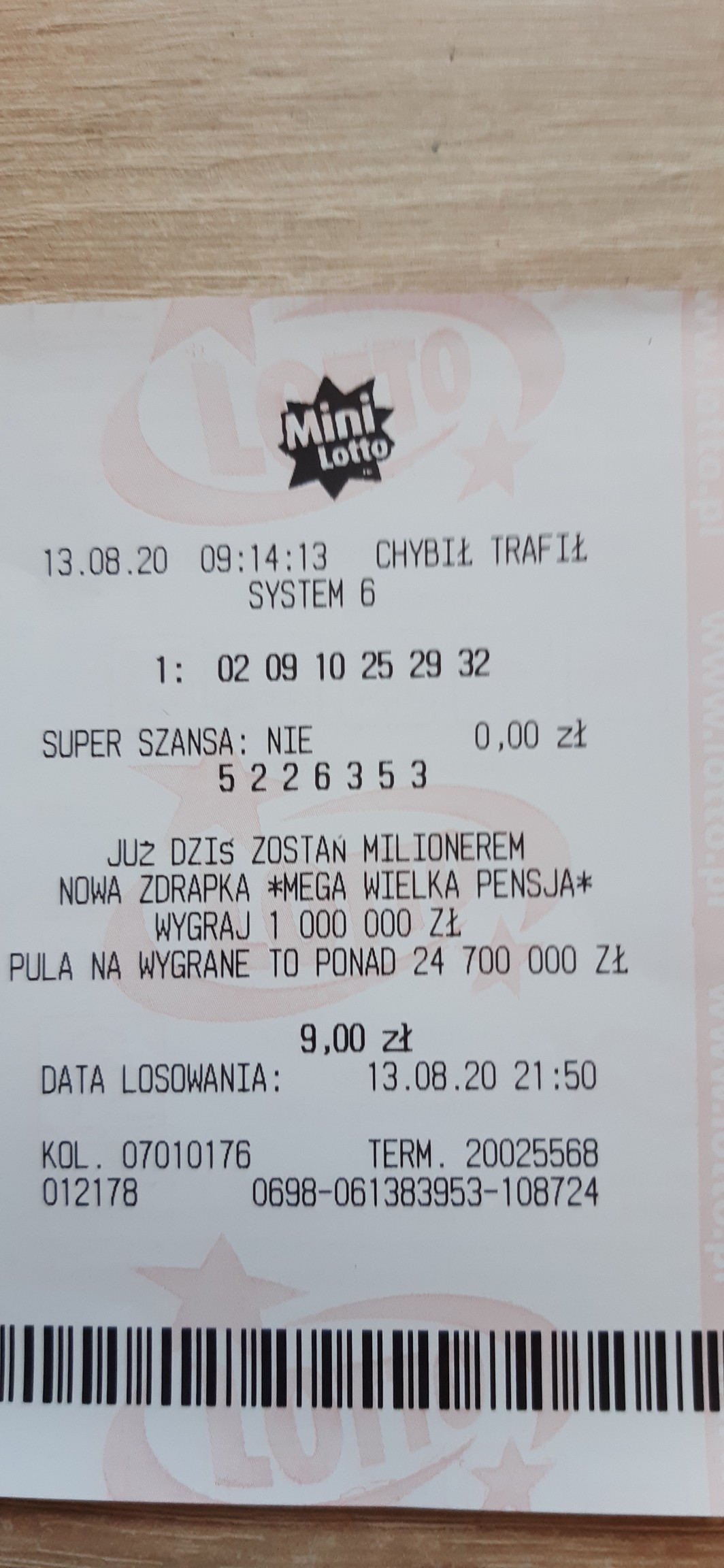 Udało się trafić trójkę w systemie S6 , z obokiem do 4 :x