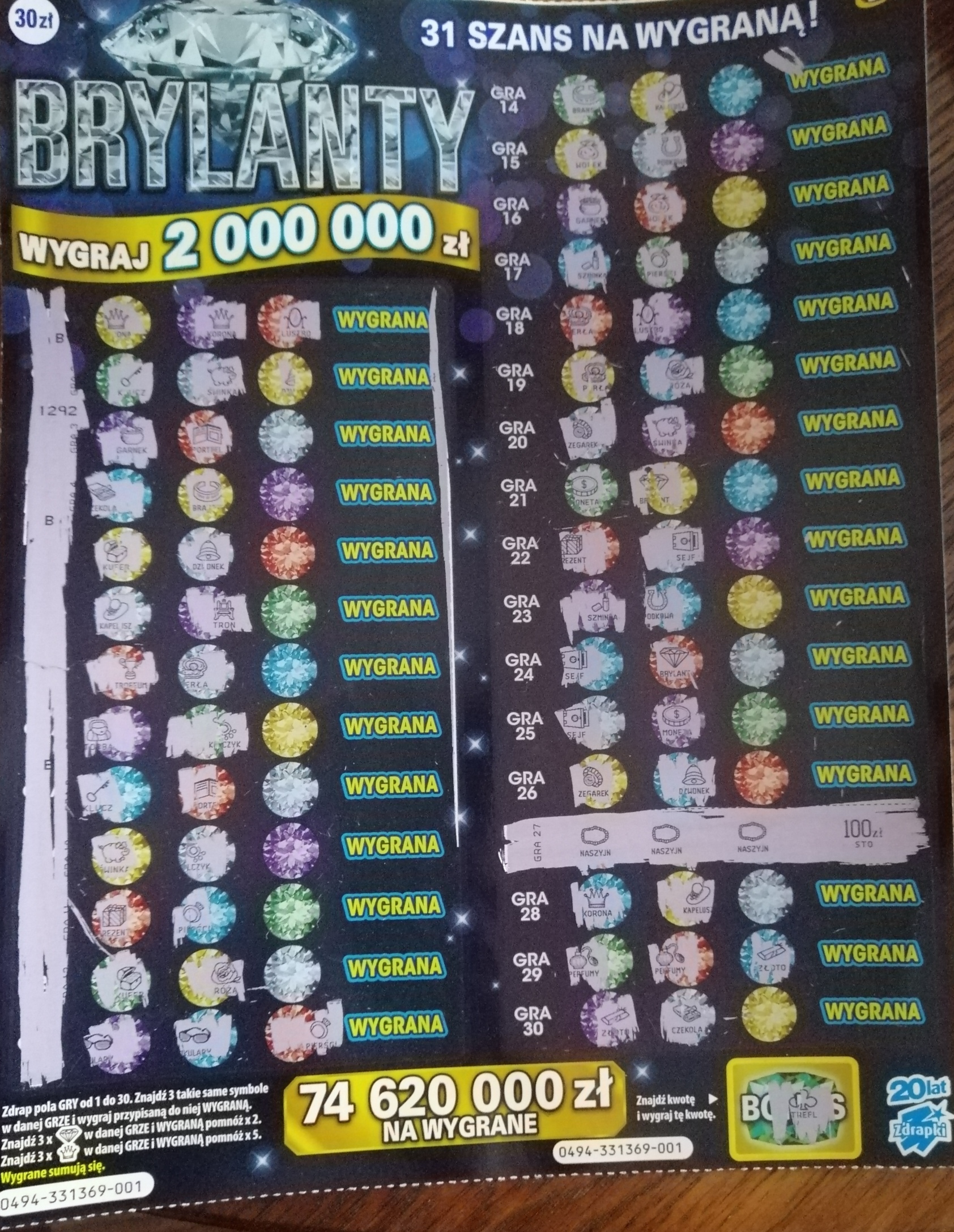 Dziękuję za gratulacje, wymieniłam na 1 sztukę w innym punkcie i trafiłam 100 zł też w nr 01:)
